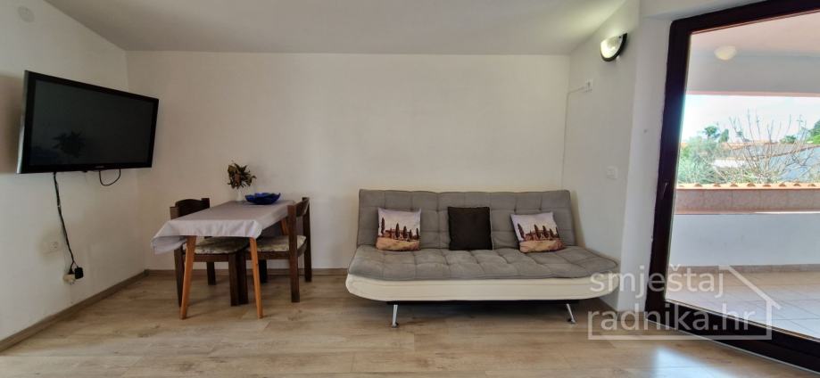 Apartman se sastoji od opremljene kuhinje, dnevnog boravka sa blagovaonom te jedne sobe koja je opremljena bračnim krevetom i jednim odvojenim. Jedan odvojeni krevet se nalazi u dnevnom prostoru te isto tako kauč na razvlačenje. Apartman ima izlaz na terasu.