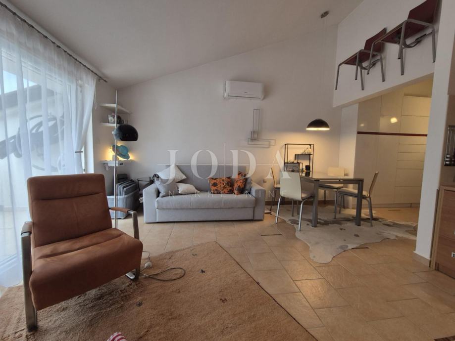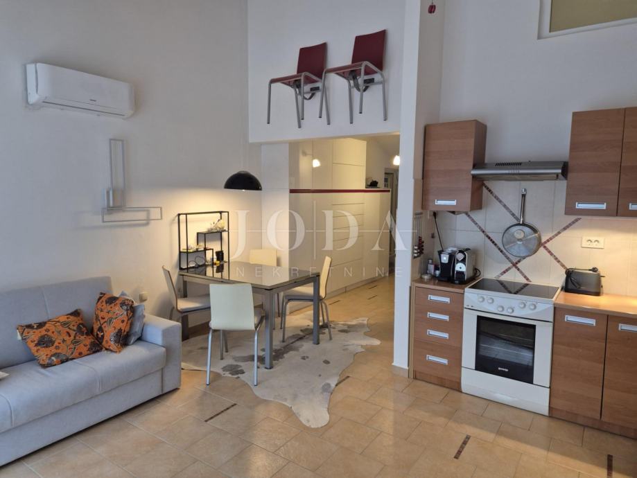 Ovaj šarmantni apartman smješten je u visokom potkrovlju kvalitetne zgrade i prostire se na 51,87 m².