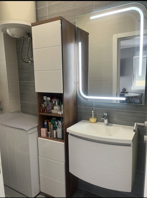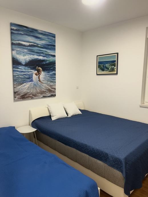 2025. god. je postavljena nova perilica suđa, dva nova televizora u dnevnoj sobi i spavaćoj sobi, novi frižideri (drugi frižider je u ostavi), novi umivaonik u kupaoni, novi kupaonski ormarić, novo ogledalo i nove slavine u kupaoni i kuhinji. U sobama dva nova ugradbena ormara, u manjoj sobi novi bračni krevet i novi ugradbeni ormar. U većoj sobi je bračni krevet plus krevet za jednu osobu i novi ugradbeni ormar, novi televizor. Nove tende na balkonu, novi stol i stolice na balkonu i u dnevnom boravku. Do plaže Babe i plaže Primorska ulica nema uspona pa je idealno za starije i/ili obitelj s djecom. Uređenom šetnicom do centra Novalje, dućana (Plodine, Konzum, Tommy, Studenac, Bipa…), restorana i ostalih sadržaja je 10 minuta hoda. Apartman prodaje vlasnik.