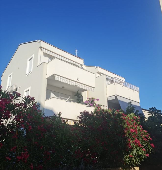 Apartman je na 1. katu, a nalazi se u ulici Put bab, Gaj, 70m od plaže Babe i plaže Primorska ulica. Uporabna dozvola izdana 2012. god. te uredne sve ostale dozvole, vlasništvo 1/1, bez tereta. Apartman ima 52 kvadrata: dnevni boravak s open space kuhinjom, dvije spavaće sobe, kupaona, ostava i jedno parkirno mjesto broj 4 upisano u vlasnički list. Zgrada je priključena na kanalizaciju.