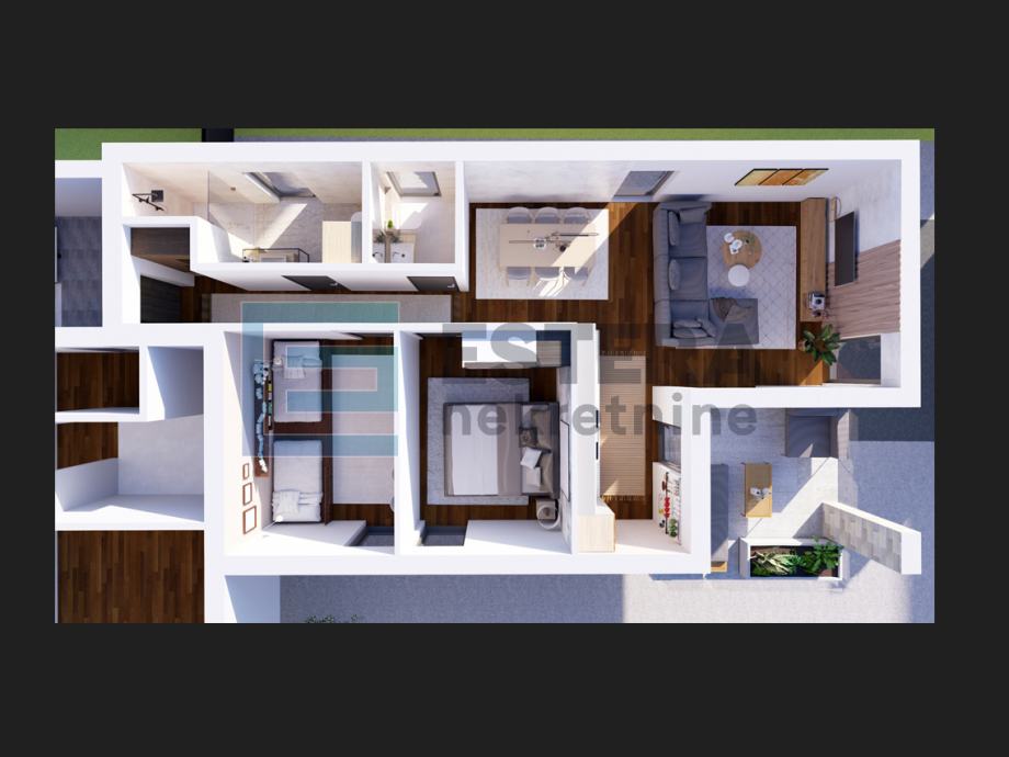 Sve vizualizacije interijera razvijene su isključivo za potrebe predstavljanja mogućnosti opremanja prostora potencijalnim kupcima i ne odnose se na izvedbene projekte uređenja.