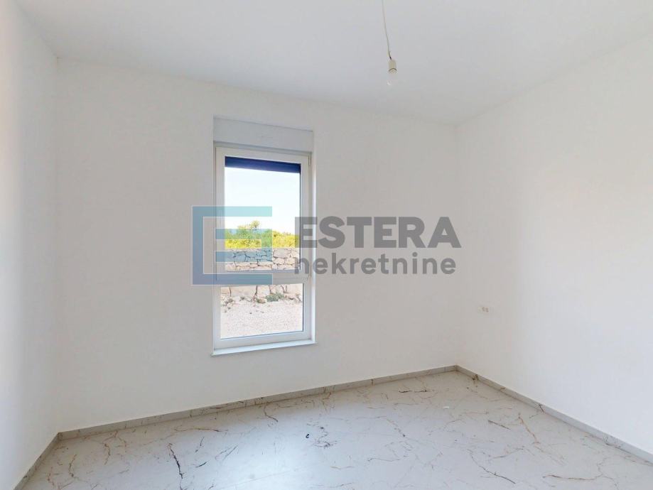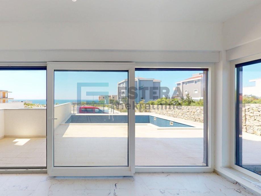 Sastoji se od velike dnevne sobe, s blagovaonicom i kuhinjom, iz koje se se izlazi na natkrivenu terasu, potom na bazen i pripadujući vrt. Osim toga postoje dvije spavaće sobe, prostrana kupanica s tuš kabinom i WC-om, kao i zasebni WC. U gradnji su korišeni vrhunski materijali kao što su Daikin klima uređaj, protuprovalna i protupožarna vrata itd. Apartman možete detaljno pregledati na linku za 3D virtualnu šetnju: https://my.matterport.com/show/?m=z981HoPa3k2