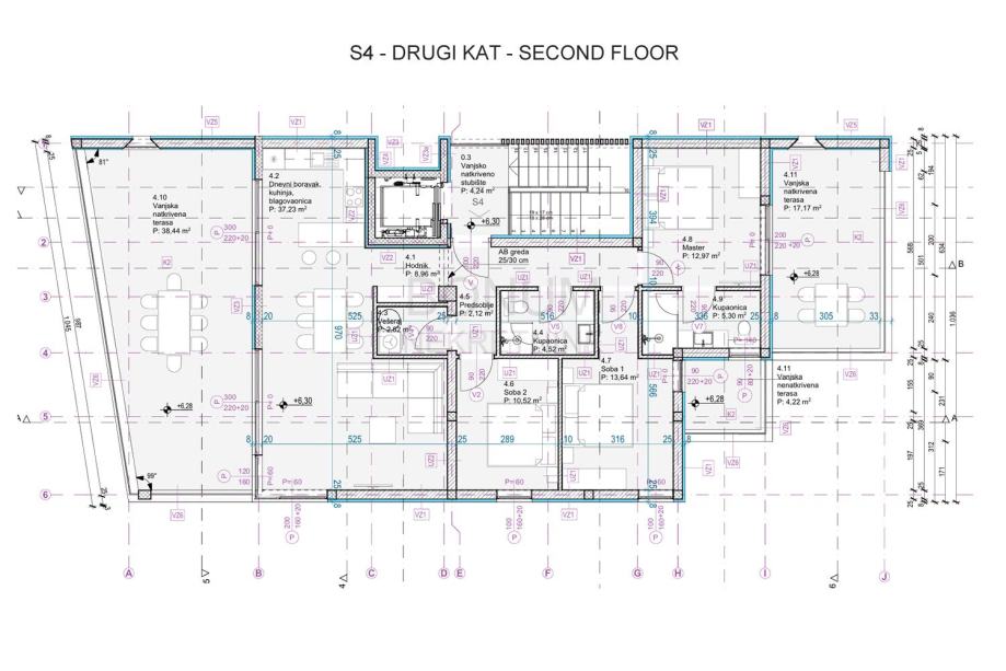 Stan S4 ima tri prostrane spavaće sobe, dvije moderno opremljene kupaonice, dnevni boravak povezan s kuhinjom i blagovaonicom te veliku vanjsku terasu (38.44 m2) za uživanje na otvorenom. Master soba ima izlaz na svoju vlastitu terasu od 17.17 m2, dok jedna spavaća soba ima svoju manju nenatkrivenu terasu od 4.22 m2.
