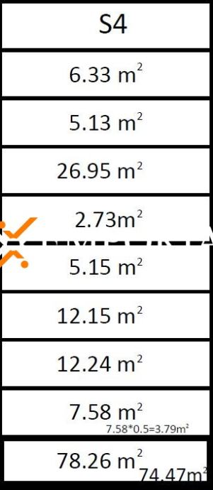 Sveukupna neto korisna površina stana sa svim pripacima iznosi 75,97 m2.