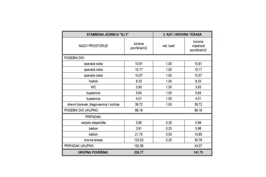 Stan S3 impresionira svojim prostranim rasporedom, s tri spavaće sobe, dvije kupaonice, toaletom, hodnikom, dnevnim dijelom s blagovaonicom i kuhinjom te prostranim balkonom. Također, apartmanu pripada i krovna terasa s spektakularnim pogledom. Pripada mu i jedno parkirno mjesto, dodatno olakšavajući svakodnevni život.