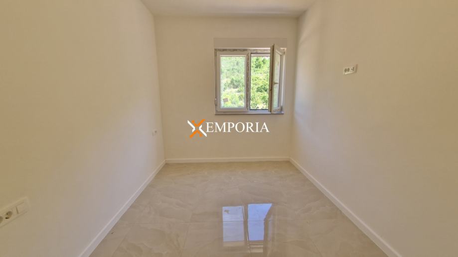 Stan se sastoji od hodnika sa sedam stepenica koje čine polu-etažu, dnevnog boravka s blagovaonicom i kuhinjom, dvije spavaće sobe, kupaonice, zasebnog WC-a, spremišta i natkrivene terase.