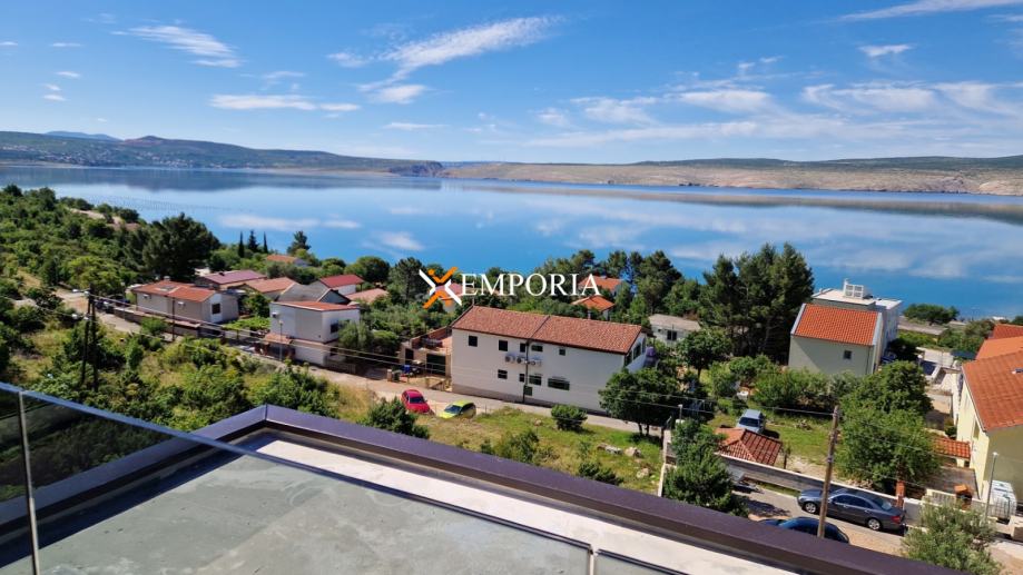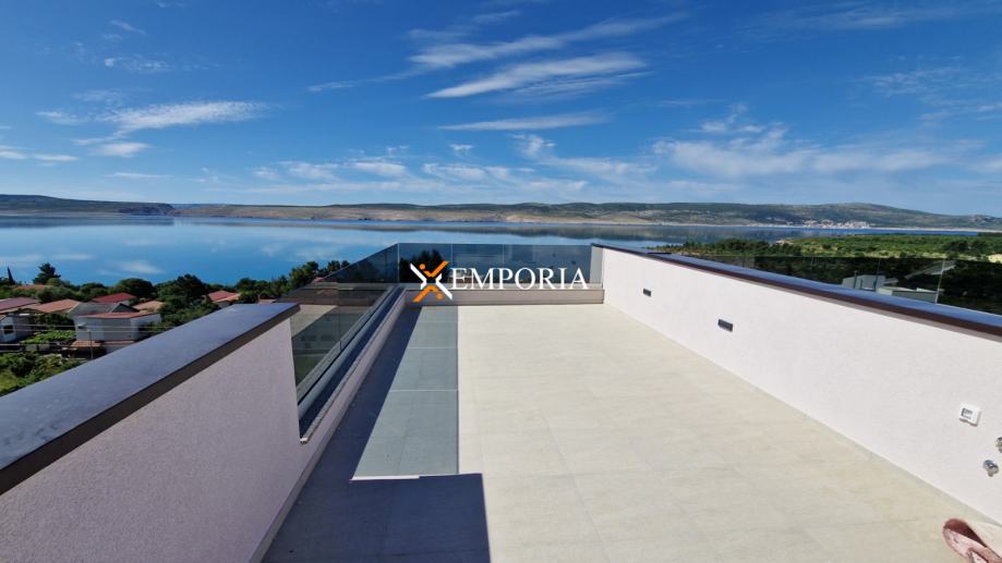 Na drugom katu novogradnje s ukupno četiri stambene jedinice u mjestu Seline, općina Starigrad, smješten je ovaj moderno koncipiran apartman s odličnim pogledom na more. Udaljen je svega 220 metara od mora i 2,5 kilometra od centra mjesta. Stan se nalazi na posljednjoj etaži i jedini u zgradi ima vlastitu krovnu terasu.