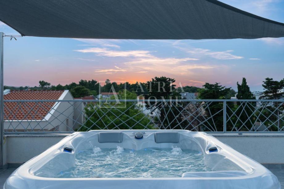 -Apartmanu također pripada natkrivena terasa površine 20,99m2, nenatkrivena, krovna terasa površine 46,09m2 te tri parkirna mjesta.