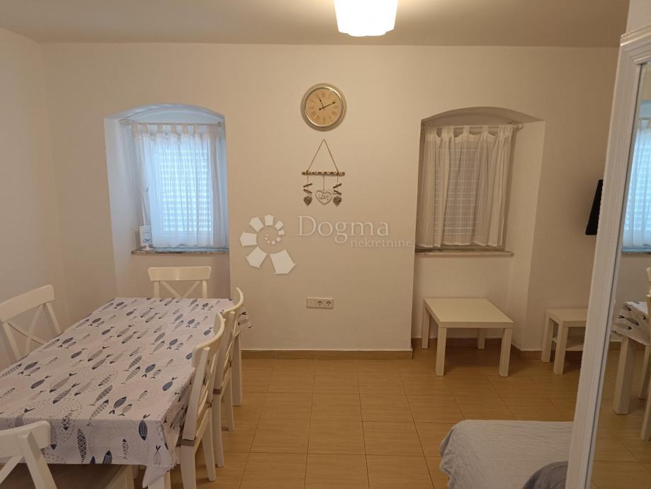 Apartman je trosoban na prvom katu, sa zasebnim ulazom izvan kuće. Sastoji se od dvije spavače sobe, open space kuhinje blagavaone i dnevnog boravka, kupaonicom sa wc-om i ulaznim hodnikom. Ispred apartmana je dvorište, gdje se može uživati, pogotovo u večernjim satima uz čašicu vina. Ovaj apartman je savršen za obiteljski odmor, ali je također odlična investicija jer je kategoriziran sa tri zvjezdice sa odličnim recenzijama.