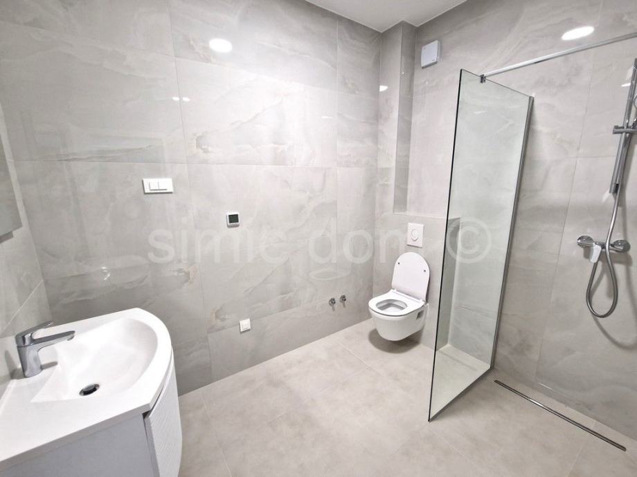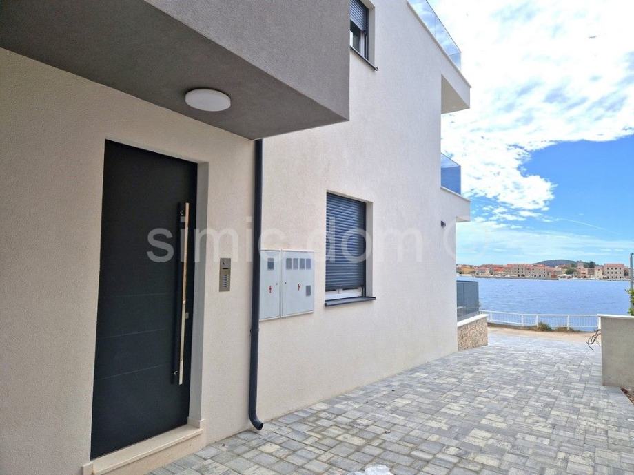 Na prodaju je vrhunski apartman smješten u novogradnji u prvom redu do mora u mirnom mjestu pored Šibenika. Apartman se nalazi u prizemlju zgrade (oznake S1) te ima ukupnu neto površinu od 89,63m2, odnosno 57m2 unutarnje površine, 145m2 dvorišta, a još je tu i vanjsko parkirno mjesto. Apartmanse sastoji od hodnika, toaleta, kuhinje s blagovaonicom i dnevnim boravkom u jednoj cjelini, dvije spavaće sobe i dvije kupaonice. U gradnji su korišteni vrhunski materijali i svi stanovi su odlično opremljeni: ALU i PVC stolarija s roletama opremljenim elektromotorom, stiropor fasada, kupaonice sa vrhunskom keramikom i sanitarijama te podnim grijanjem s digitalnim termostatom, inverter klima uređaji s grijanjem i hlađenjem, protuprovalna i protupožarna ulazna vrata. Zgrada je useljiva kroz ljeto 2024. godine. Brodarica je odlično malo mjesto sa svim sadržajima, predivnim šljunčanim plažama, udaljeno svega 5 minuta vožnje od Šibenika.