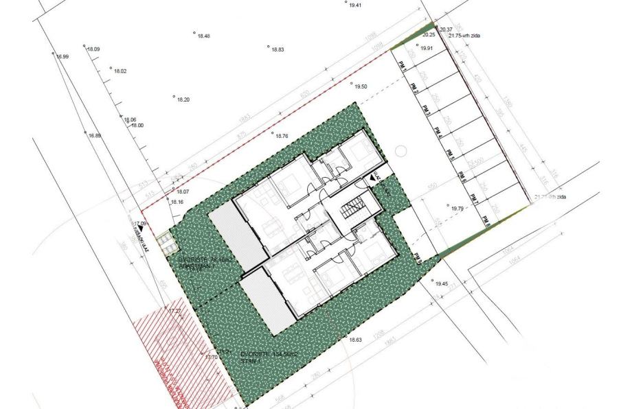 Apartman A2 ukupne veličine 93,67m2 nalazi se na 1.katu stambene zgrade i sastoji se od STAMBENOG DIJELA površine 78,76m2 (hodnik, spremište, spavaća soba 1, spavaća soba 2, kupaonica 1, kupaonica 2, dnevni boravak, kuhinja i blagovaonica), TE VANJSKOG DIJELA terasa – 17,29m2 i parking mjesta 2 komada – 25m2.