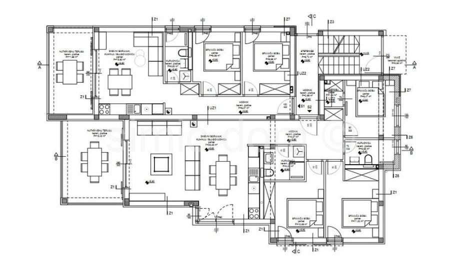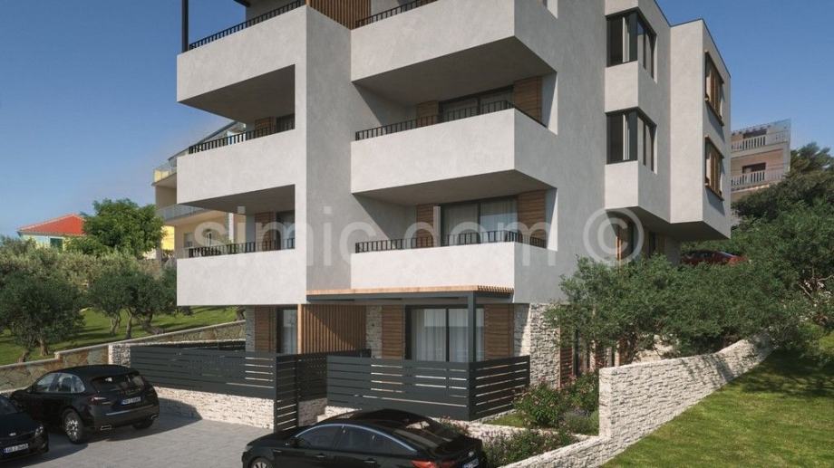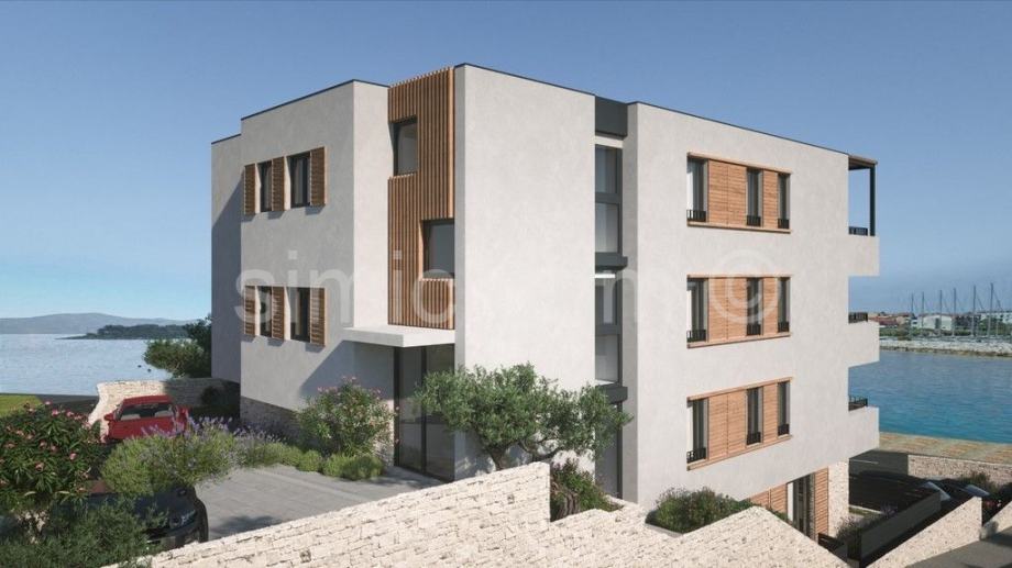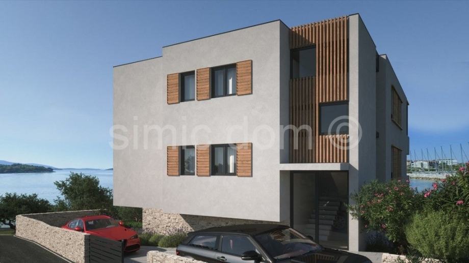 Na prodaju je apartman u novogradnji smještenoj na atraktivnoj lokaciji u prvom redu do mora u Jezerima. Zgrada je smještena tik uz plažu te se iz svih njenih apartmana može uživati u spektakularnom pogledu na more i otoke u uvali. Sadržaji poput kafića ili dućana nalaze se na manje od minute hoda. Apartman ima oznaku S2 i smješten je na prvom katu - odnosno trećoj etaži zgrade. Njegova ukupnu neto korisnu površinu iznosi oko 87 m2. Sastoji se od hodnika, tri spavaće sobe (jedna ima vlastitu garderobu), dvije kupaonice te open-space dnevnog prostora (kuhinja s blagovaonicom i dnevnim boravkom). Dnevni boravak nudi pristup na natkrivenu terasu s koje se pruža fantastičan pogled na more. Zgradu gradi renomirani investitor, a gradit će se po visokim standardima. Apartmani će biti opremljeni kvalitetnim materijalima: modernom keramikom i sanitarijama, PVC stolarijom, protuprovalnim vratima, klimom u svim prostorijama, komarnicima, izo staklom. Također, bit će izvedena priprema podnog grijanja po sistemu dizalice topline na vodu. Apartmanu pripada jedno parkirno mjesto. Plaćanje je etapno, a interijer stana moguće je prilagoditi prema željama novog vlasnika. Projekt ima sve dozvole, a planirani početak gradnje je na jesen 2024. godine. Završetak radova i useljenje predviđeni su za proljeće 2026. godine.