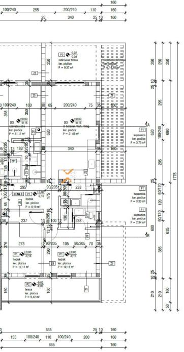 Izgradnja zgrade sastoji se od ciglenog bloka. Termoizolacija fasade je 10 cm stiropor. Prozori su od PVC materijala s troslojnim staklom, komarnicima i elektroroletama. Podne obloge su pločice. Klima uređaji u spavaćim sobama i dnevnom boravku – ukupno 3 uređaja. Nadalje, podno grijanje u kupaonicama. Osim toga, postoji i dimnjak. Na kraju, ulazna vrata su protuprovalna i protupožarna.