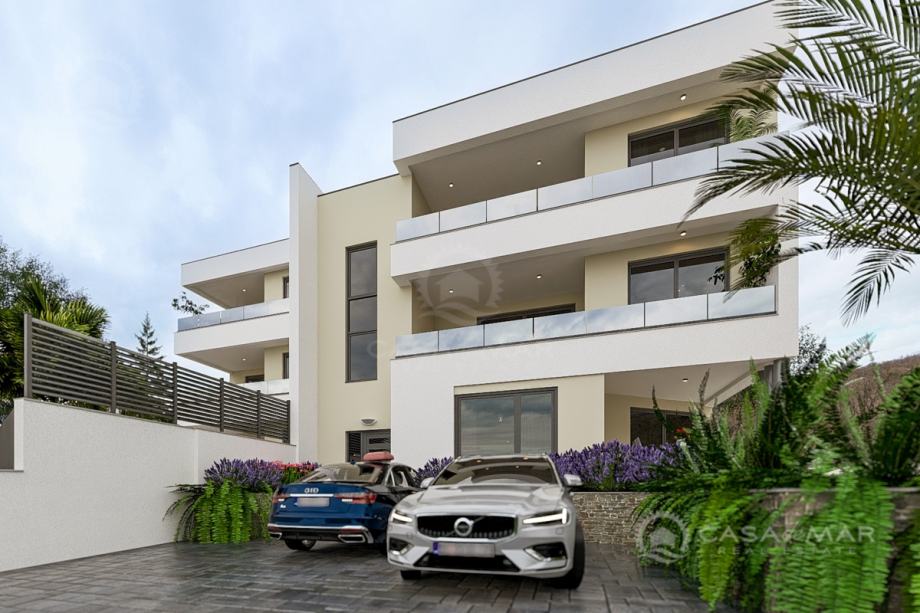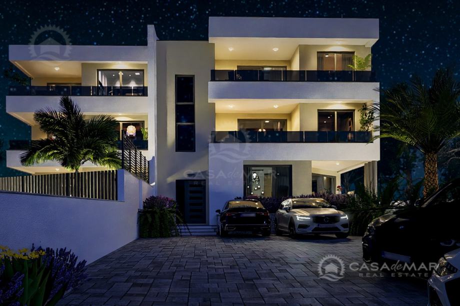 Apartman se prostire na 103 m² stambene površine i nudi funkcionalan raspored: prostrani open space dnevni boravak s kuhinjom i blagovaonicom, tri udobne spavaće sobe, dvije kupaonice te natkrivenu terasu s koje se pruža izlaz na prostranu okućnicu. Terasa je idealno mjesto za opuštanje i uživanje u pogledu na more, kao i za druženja s obitelji i prijateljima.