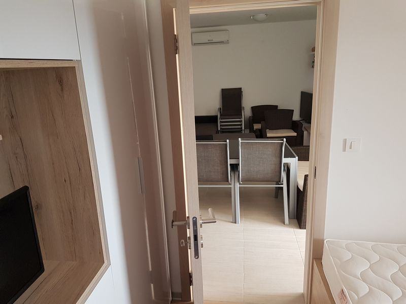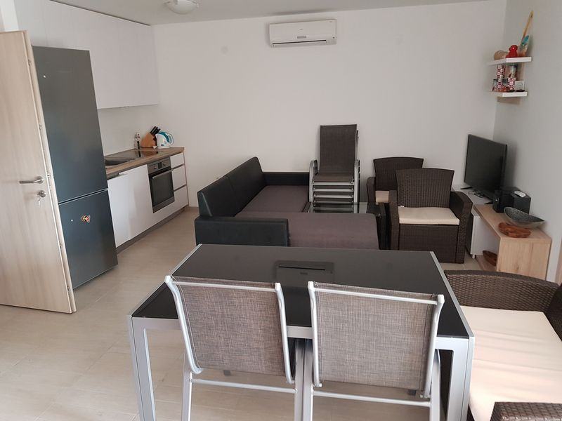 Svaka kuhinja ima i ugradbene perilice suđa, a kupaone perilice rublja. Namješteno, televizori ……..