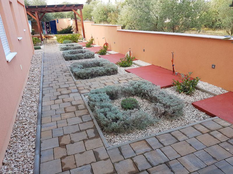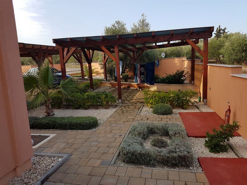 Vani su natkrivena tri parkirna mjesta od 36,20 m2, te nadstrešnica za roštilj od cca. 23,10 m2 , plus još dva mjesta od po 2 m2 za postavljati roštilj.