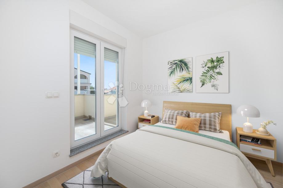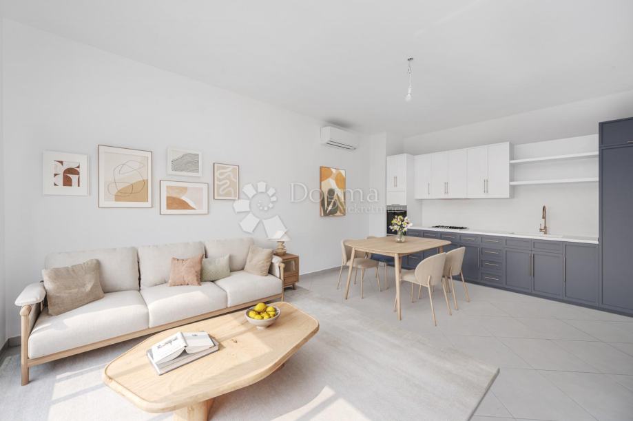 Apartman je potpuno nov i nenamješten, što budućem vlasniku omogućuje uređenje interijera prema vlastitom ukusu. Sastoji se od dvije komforne spavaće sobe, prostranog dnevnog boravka povezanog s kuhinjom i blagovaonicom, kupaonice te ulaznog prostora.
