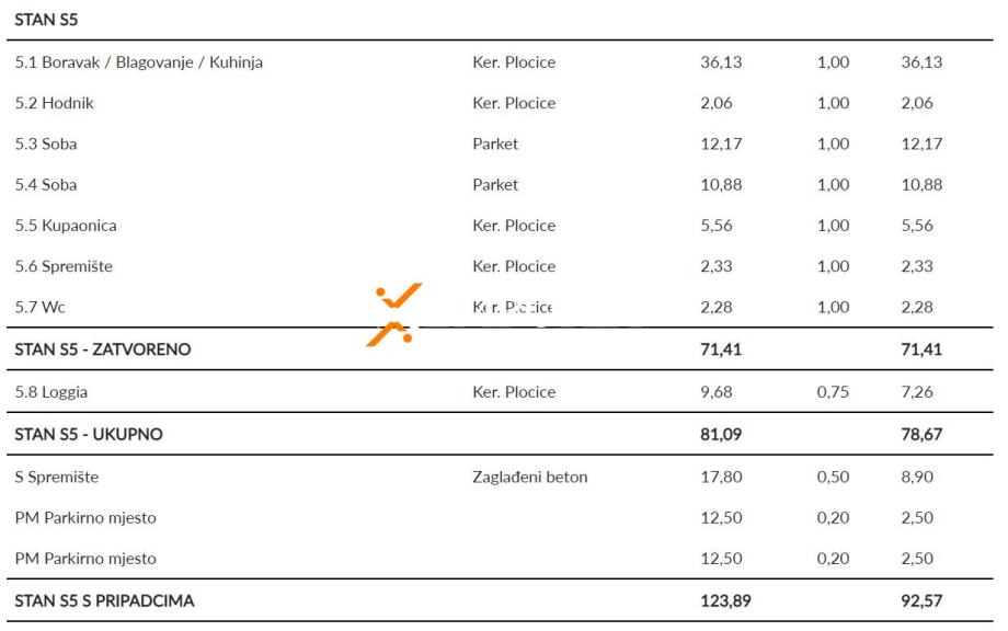 Slijedom navedenog, ukupna neto korisna površina stana sa svim pripacima iznosi 92,57 m2.