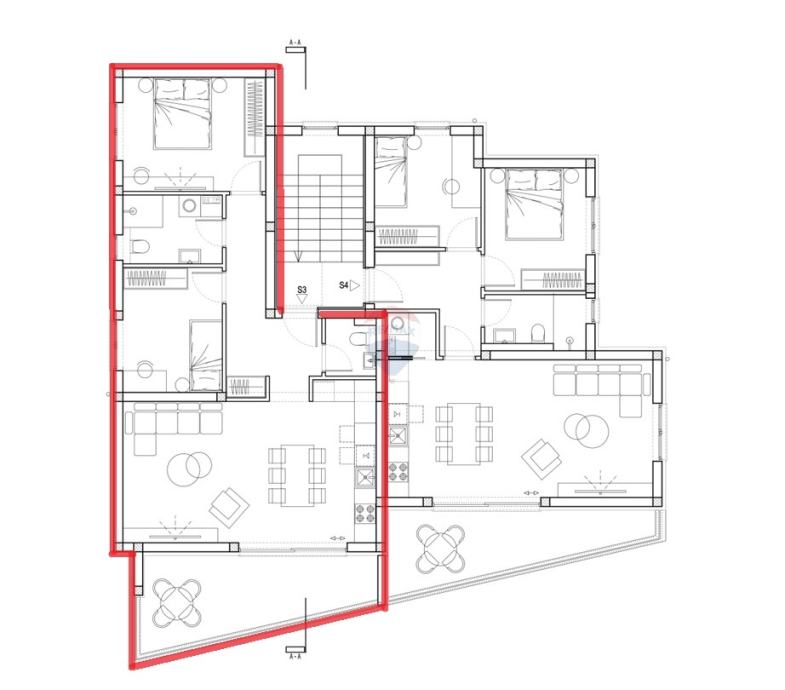 Apartman se sastoji od hodnika, dvije spavaće sobe, wc/kupaonice, dodatnog wc-a, kuhinje blagovaonice i dnevnog boravka u otvorenom konceptu s izlazom na natkrivenu terasu s koje se pruža prekrasan pogled na more.