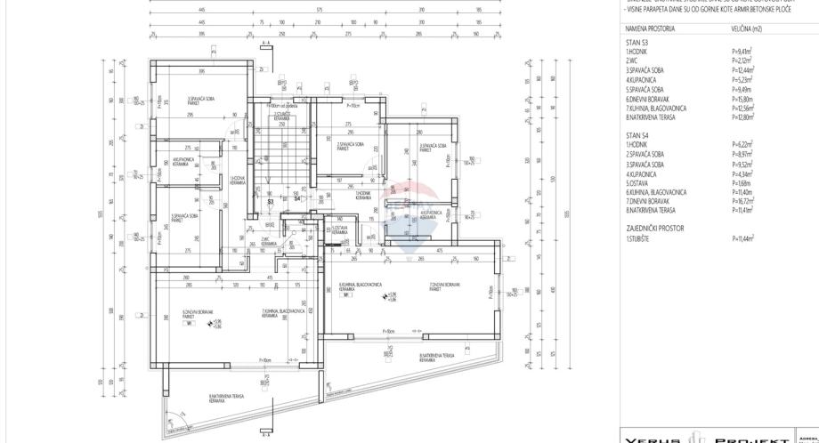 Apartman površine 73,45 m2 nalazi se na drugom katu zgrade koja se sastoji od prizemlja i dva kata i broji 7 stanova u zgradi.
