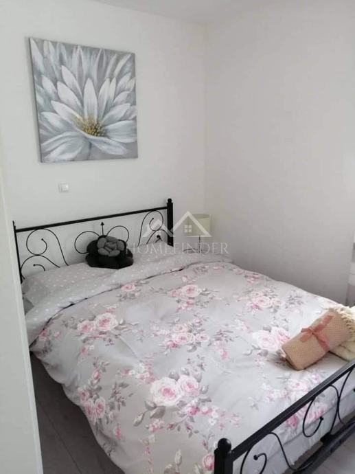 Površina apartmana iznosi 48 m², a sastoji se od hodnika, kuhinje s blagovaonicom i dnevnim boravkom, dvije spavaće sobe i kupaonice. Dodatnu vrijednost pruža prostrani balkon od 10,85 m² s predivnim pogledom na more. Uz apartman dolazi i vlastito parkirno mjesto u dvorištu, a objekt je opremljen septičkom jamom.