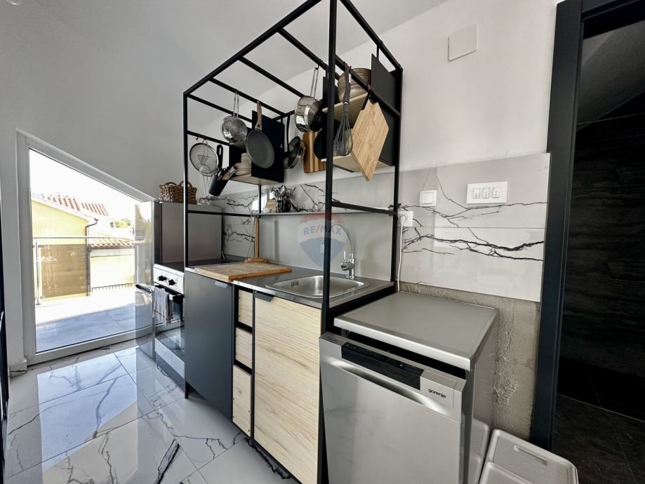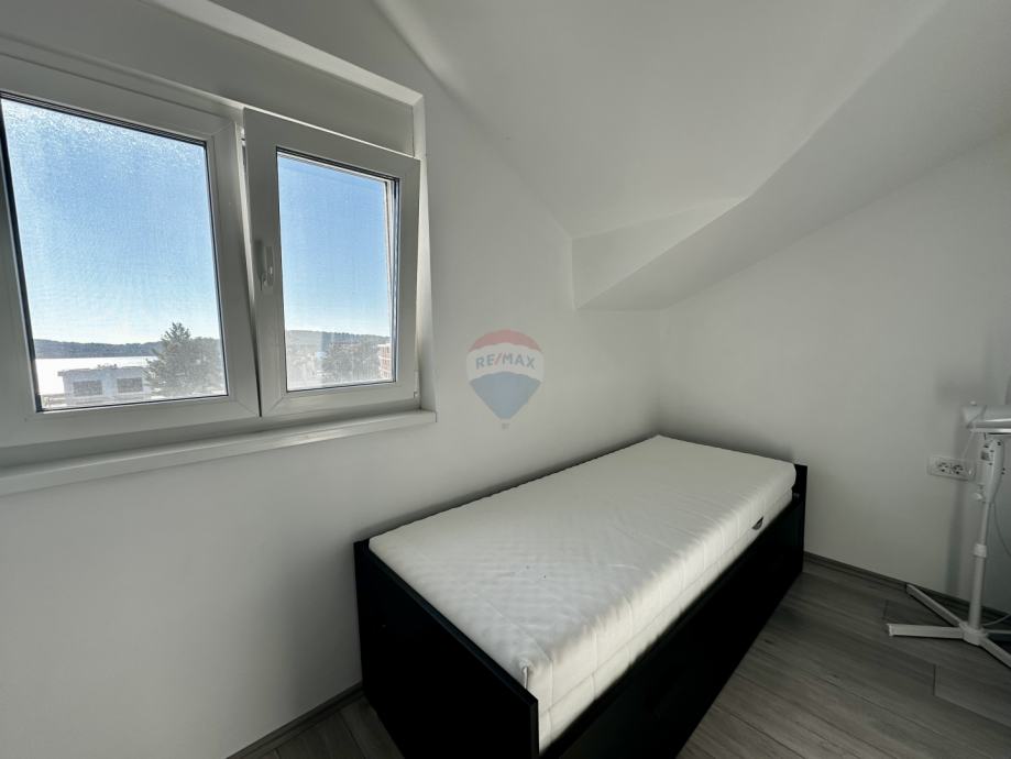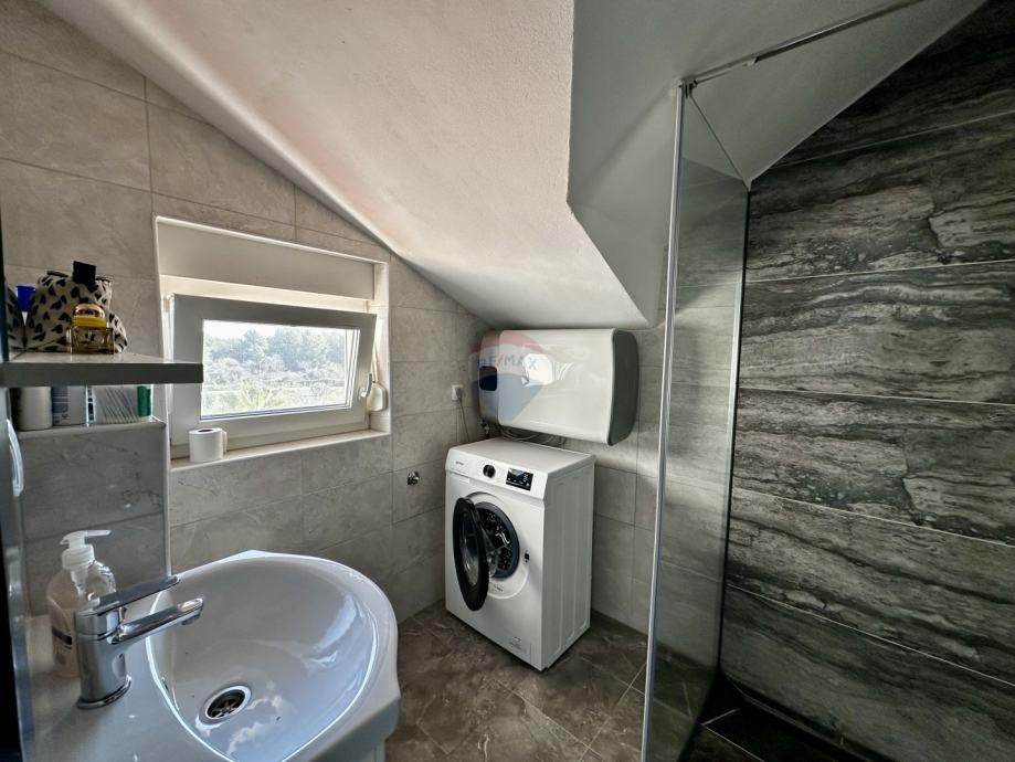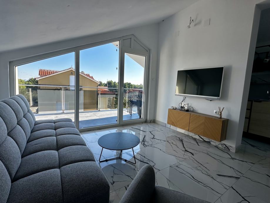 Posebna vrijednost ove nekretnine je terasa površine gotovo 13 m², s koje se pruža pogled na more – idealno mjesto za jutarnju kavu ili opuštanje u večernjim satima.