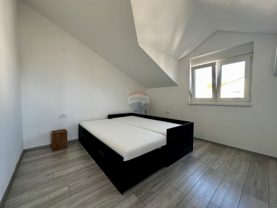 Apartman se nalazi na drugom, ujedno i zadnjem katu manje stambene zgrade, što osigurava dodatni mir i privatnost. Ukupna stambena površina iznosi 49,42 m², a raspored je izuzetno funkcionalan. Sastoji se od opremljene kuhinje povezane s dnevnim boravkom, kupaonice te dvije spavaće sobe.