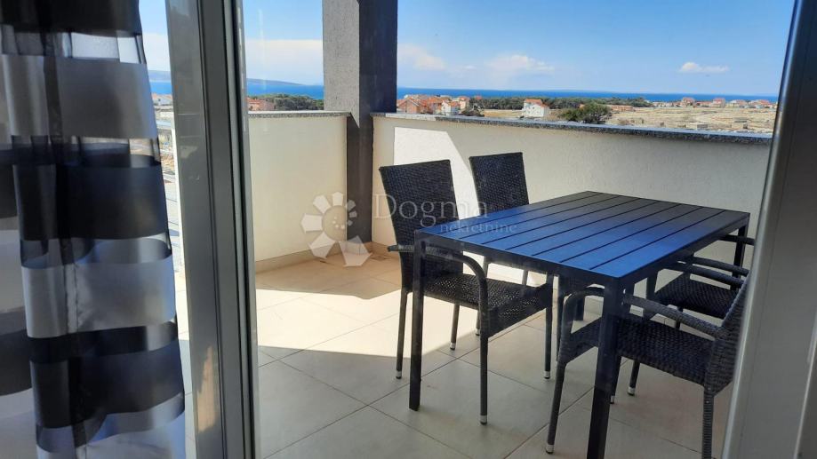 Apartman se sastoji od dvije spavaće sobe, dnevnog boravka s kuhinjom i blagovaonicom, kupaonice, zasebnog WC-a te natkrivene terase. Iz svih prostorija pruža se otvoreni pogled na more, što dodatno doprinosi osjećaju komfora.