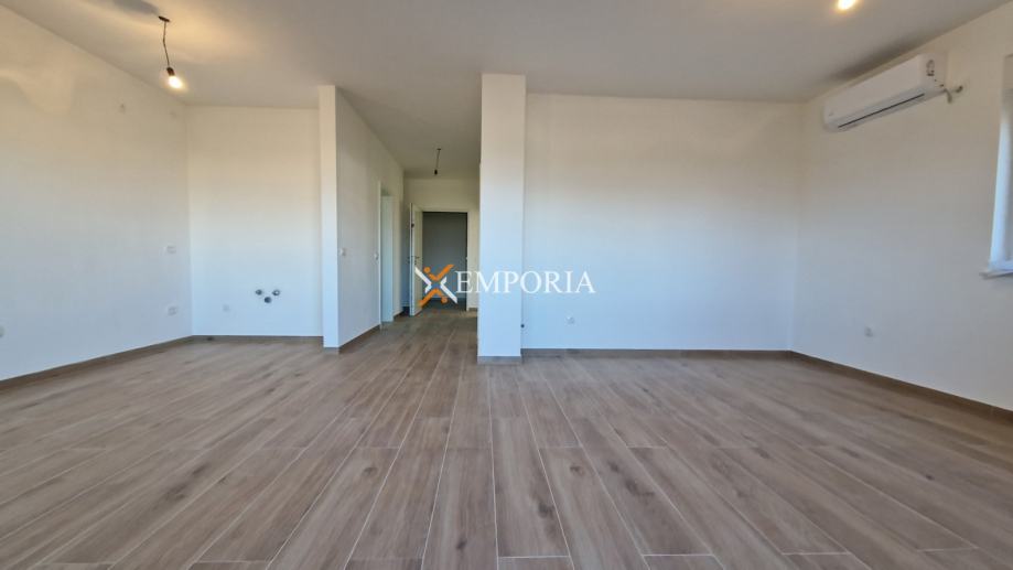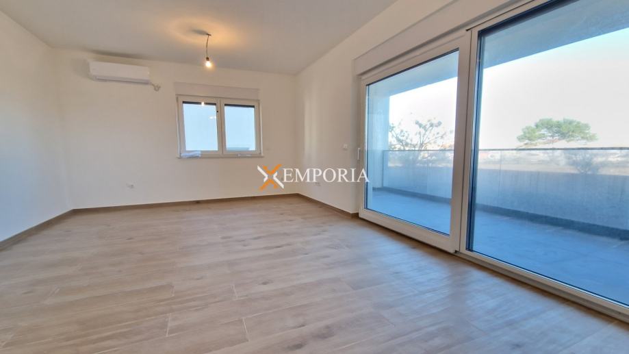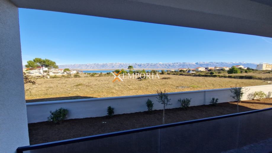 Od mora je ova nekretnina udaljena 250 m, a od centra Vira 3 km.OpremaGradnja ciglenim termo blokom. Termoizolacija fasade 10 cm stiropor. Podne obloge su pločice. PVC prozori s električnim roletama, troslojnim staklom i komarnicima. U stanu su 3 klima uređaja. Jedan klima uređaj je u dnevnom boravku, a ostala dva su u spavaćim sobama. Također, u stanu postoji priključak na dimnjak. Nadalje, ulazna vrata su protuprovalna i protupožarna.