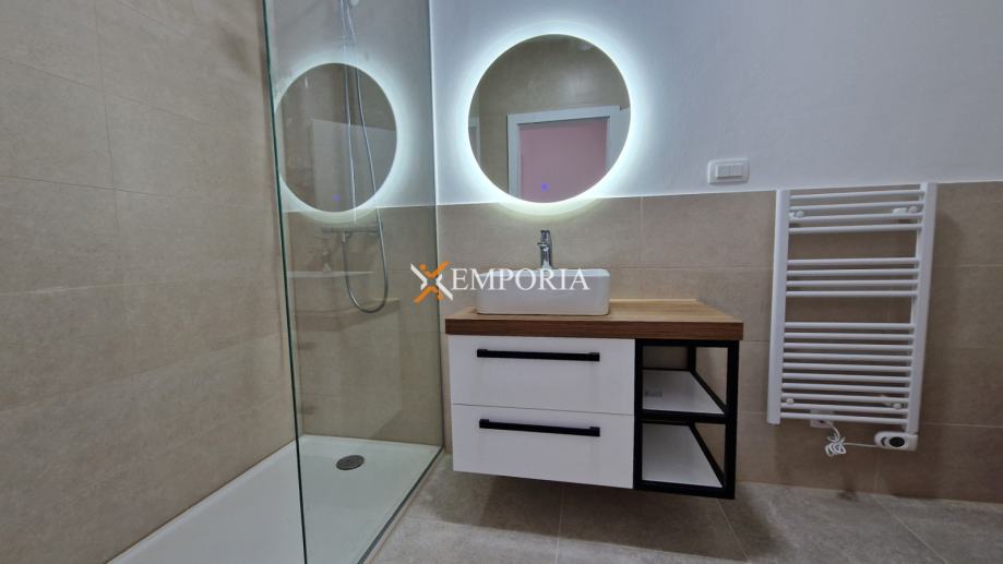 This property is 250 m from the sea, and 3 km from the center of Vir.EquipmentConstruction with brick thermal blocks. Facade thermal insulation 10 cm styrofoam. The floor coverings are tiles. PVC windows with electric shutters, three-layer glass and mosquito nets. There are 3 air conditioners in the apartment. One air conditioner is in the living room, and the other two are in the bedrooms. Also, there is a chimney connection in the apartment. Furthermore, the entrance door is burglar-proof and fire-proof.