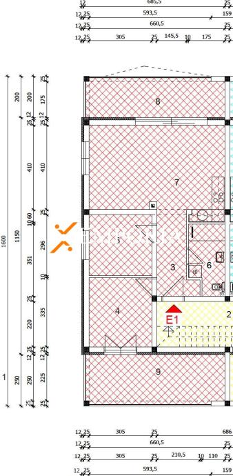 Dies ist eine Wohnung im Erdgeschoss des Gebäudes. Die Raumaufteilung besteht aus einem Flur, 2 Schlafzimmern, einem Badezimmer, einer Küche mit Ess- und Wohnzimmer sowie 2 Loggien. Die Nettonutzfläche des Beschriebenen beträgt 74,59 m2. Darüber hinaus verfügt die Wohnung über einen Garten von 38,33 m2 und einen Parkplatz.