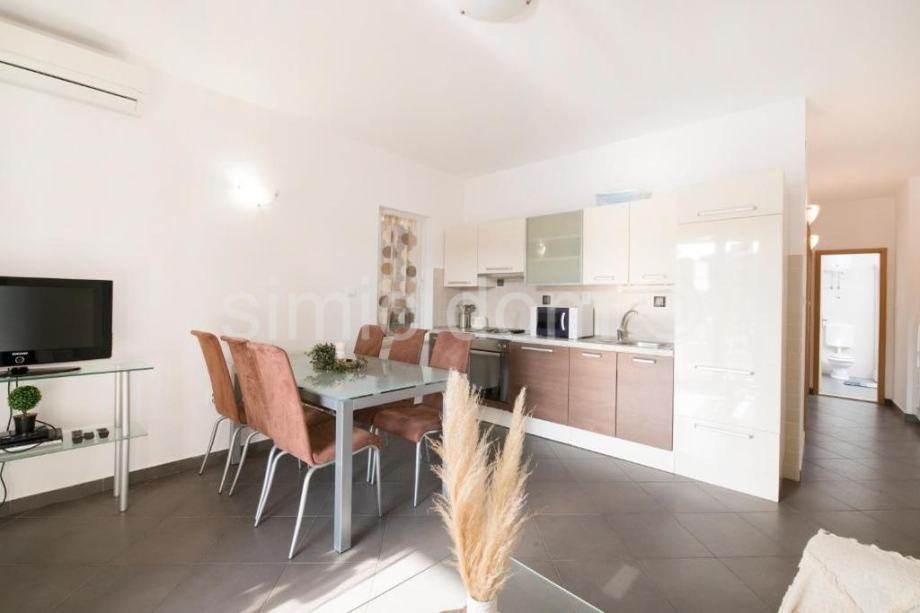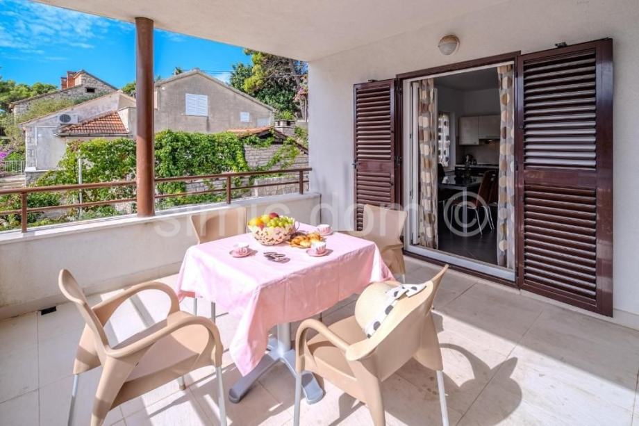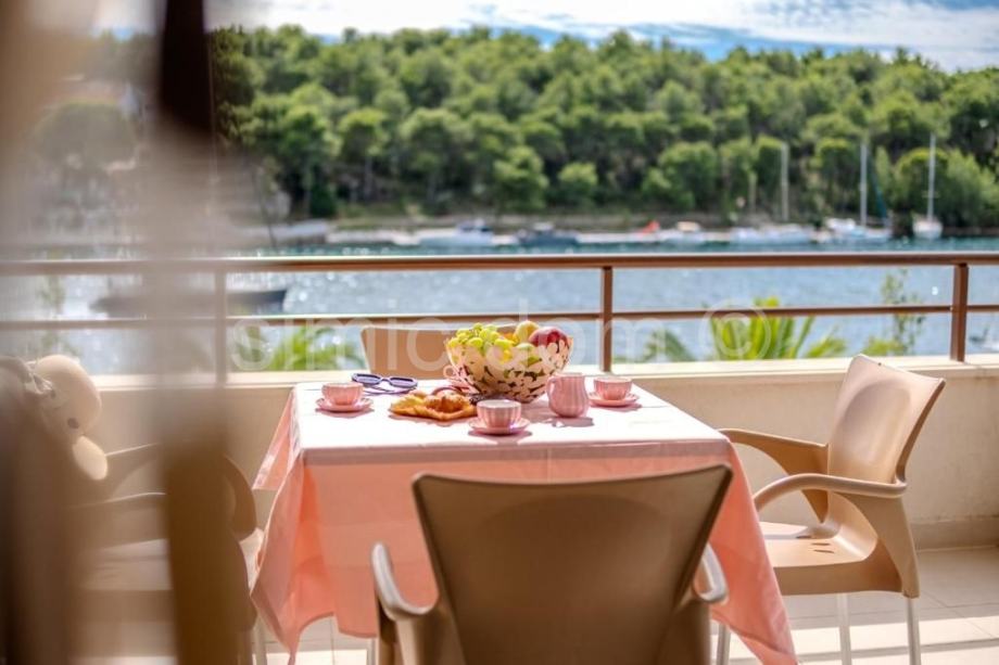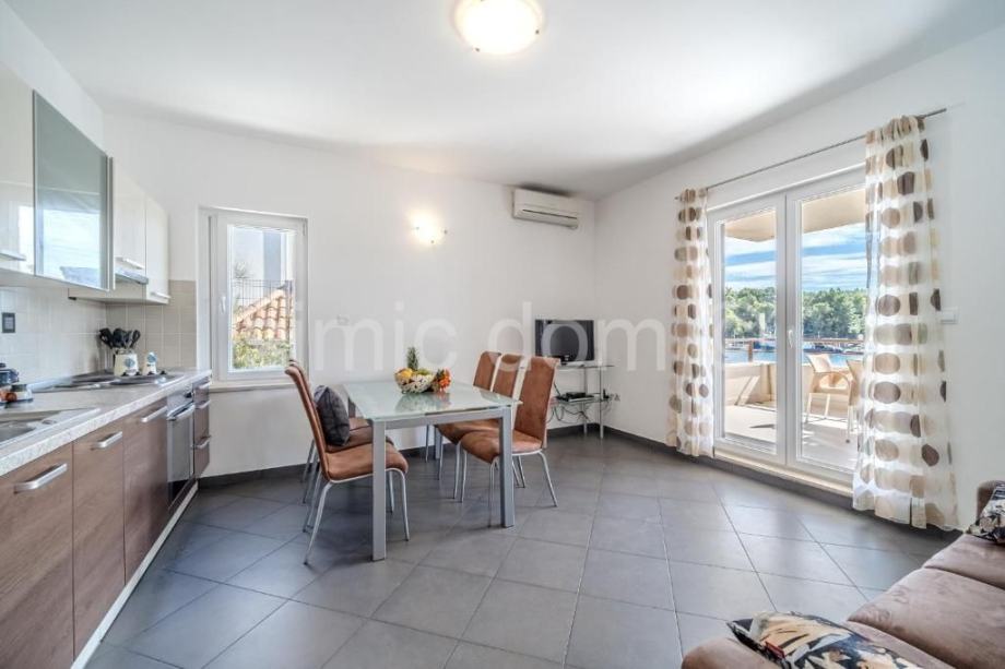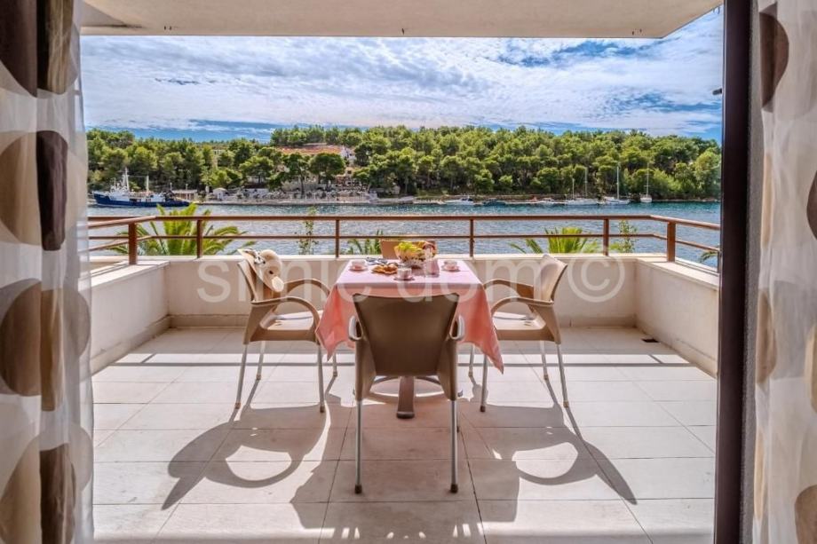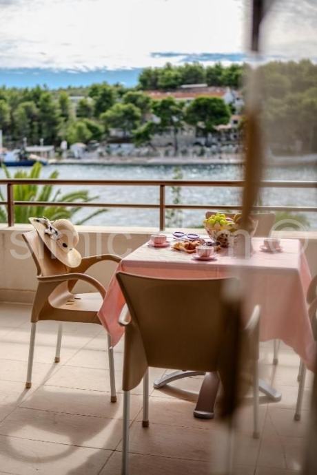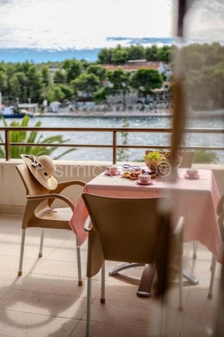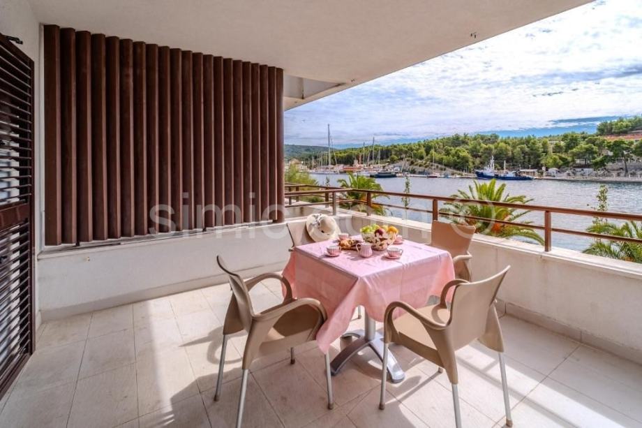 Posredujemo u prodaji apartmana u prvom redu do mora, u Milni na otoku Braču. Riječ je o apartmanu smještenom na prvom katu. Apartman ima neto površinu od 48,70 m2. Sastoji se od kuhinje otvorenog koncepta s blagovaonicom i dnevnim boravkom, dvije spavaće sobe, kupaonice te balkona – 14,70 m2, koji pruža prekrasan pogled na more i samo mjesto. Osim toga, apartmanu pripadaju i vanjsko parkirno mjesto – 10,85 m2 te dvorište 14,20 m2. Apartman je klimatiziran i u potpunosti namješten. Vlasništvo uredno.