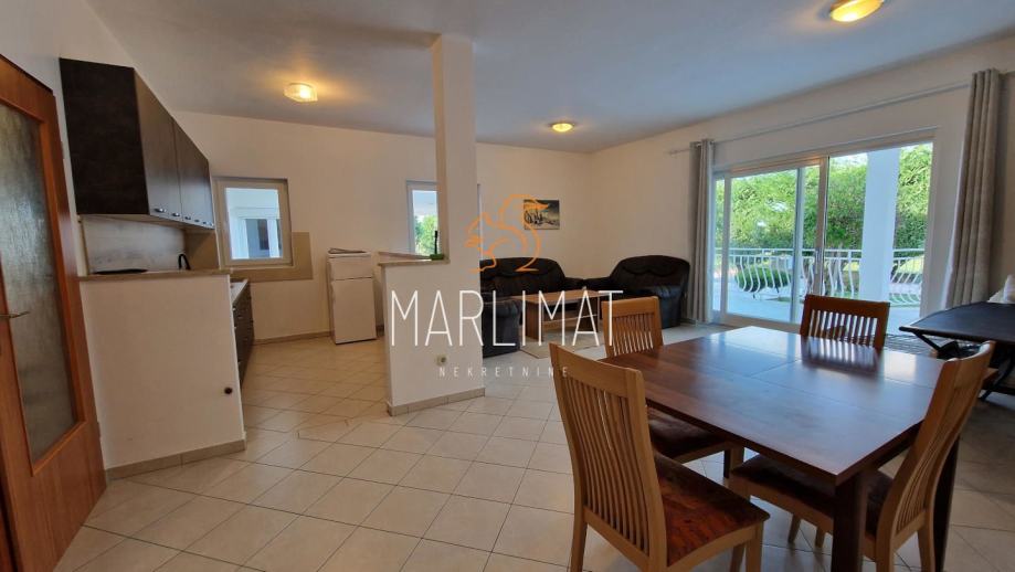 Sastoji se od: ulazni hodnik, dnevni boravak sa blagovaonicom, kuhinja, dvije spavaće sobe, kupaonica i natkrivene terase površine 25,75m2.