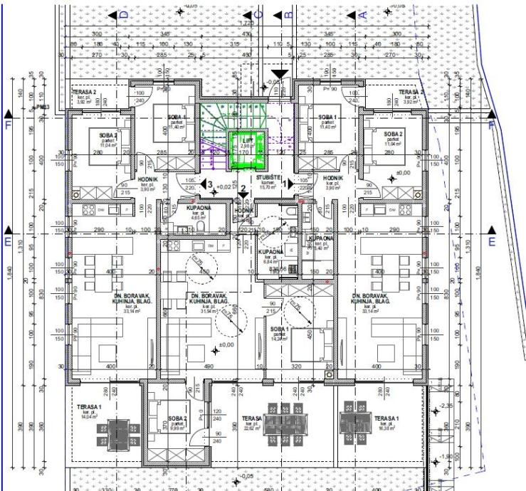 S2- Prodaje se 3-sobni dvoetažni apartman ukupne površine 87,27m2 + vrt veličine 18.23m2 + ostava u podrumu cca 3,70m2.