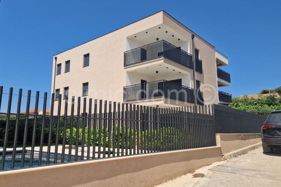 Na prodaju je predivan novi apartman u Bibinju nedaleko plaže i svih sadržaja. Zgradu gradi renomirana firma, stoga nema poreza na promet nekretnina, a moguća je i kupovina na kredit. Zgrada se gradi po najvišim europskim standardima, koristeći izuzetno kvalitetne materijale. Apartman S5 nalazise na drugom katu manje zgrade te ima ukupnu površinu od 80,79m2, odnosno 76,46m2 neto korisne površine. Apartman se sastoji od hodnika, kupaonice, dvije spavaće sobe. Kuhinje otvorenog koncepta s blagovaonicom i dnevnim boravkom iz kojeg se izlazi na predivnu natkrivenu terasu s pogledom na more. Vanjsko parkirno mjesto uključeno je u cijenu. Svi apartmani će biti odlično opremljeni: podno grijanje u cijelom stanu za maksimalnu udobnost, klima uređaji u svim prostorijama, Rehau stolarija s trostrukim staklom, komarnicima i električnim roletama, sobna vrata sa skrivenim šarkama i magnetnim bravama, protuprovalna i protupožarna ulazna vrata za dodatnu sigurnost, video portafon i video nadzor zajedničkog dvorišta i parkinga, termoizolacija fasade 10 cm stiropor. Na prodaju je također još jedan apartman na drugom katu, oznake S6, gotovo identičnog rasporeda, ali manjih proporcija, korisne površine 71,25m2, za 250.000€. Očekivani završetak radova je kraj 2026. godine. Bibinje je mediteransko mjesto smješteno uz samu obalu, poznato po prekrasnim plažama, autentičnom dalmatinskom ambijentu i blizini Zadra. Plaža je udaljena samo 10 minuta hoda od zgrade, a u neposrednoj blizini nalaze se i trgovine te restorani, kafići, ljekarna, pošta i ostali sadržaji potrebni za svakodnevni život. U obližnjem Sukošanu nalazi se popularna Marina Dalmacija, najveća marina na Jadranu. Odlična je prometna povezanost i s predivnim Zadrom koji je udaljen svega nekoliko minuta vožnje, kao i aerodrom.