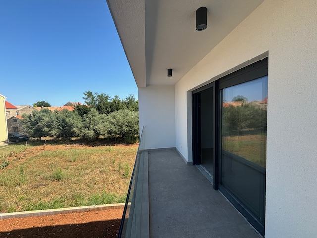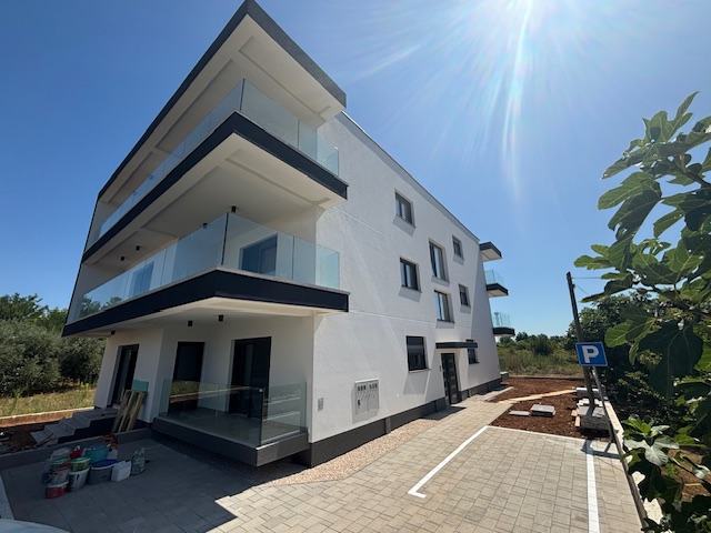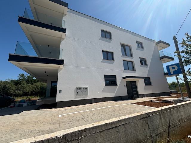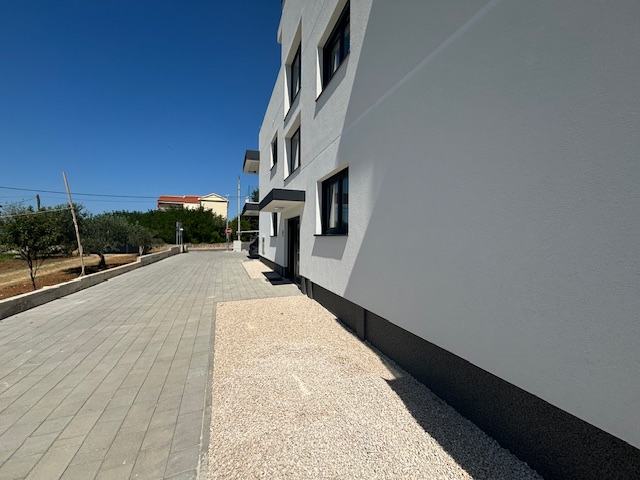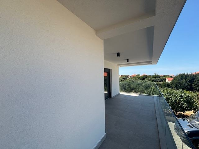 APARTMAN U PRIVLACI!! Prodaje se apartman u novogradnji u Privlaci. Zgrada je udaljena 200 m od plaže. Stan se sastoji od hodnika, ostave, wc-a, kupaonice, dnevnog boravka, kuhinje i blagovaonice, te dječije i spavaće sobe i balkona. Stanu pripada i parkirno mjesto koje ima dovedenu vodu i struju. Stan ima podno grijanje cijelog stana kroz sustav dizalice topline sa spremnikom vode od 190 litara i odvjenu inverter klimatizaciju svih prostorija. Svaka prostorija ima utičnice za internet. Roletne u cijelom stanu su električne. Moguća zamjena za manju nekretninu uz nadoplatu.