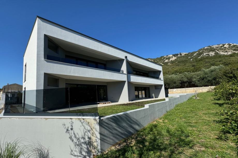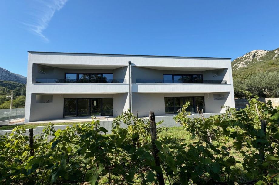 Otok Krk, Baška, šire područje, prodaja atraktivnog apartmana površine 65,57 m2, na mirnoj lokaciji. Apartman se sastoji od dvije spavaće sobe, dnevne sobe, s kuhinjom i blagovaonom, kupaonice, hodnika i terase površine 10,33 m2. Kvalitetna gradnja i oprema, ALU stolarija, klimatizacija, toplinska izolacija, dva parkirna mjesta. Udaljenost od mora i centra Baške 4000 m.