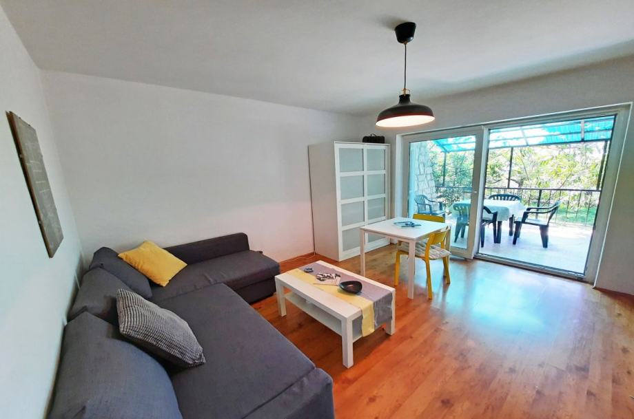 Otok Krk, grad Krk, prodaja opremljenog apartmana površine 35 m2, na atraktivnoj lokaciji, u drugom redu do mora. Apartman se sastoji od dnevne sobe, blagovaone, kuhinje, jedne spavaće sobe, kupaonice te natkrivene terase površine 14 m2. PVC stolarija s ALU griljama, klimatizacija, parkirno mjesto, vrt na korištenje. Udaljenost od plaže 50 m, udaljenost od centra 700 m.
