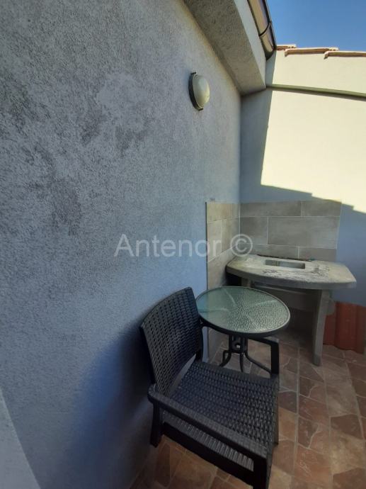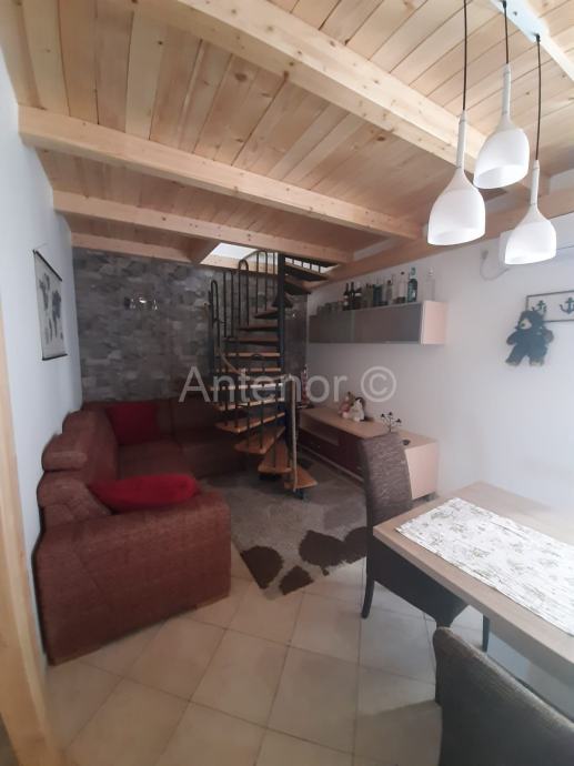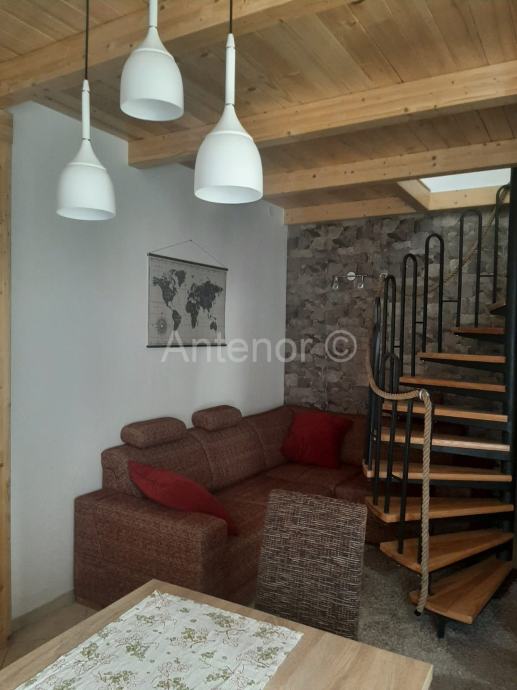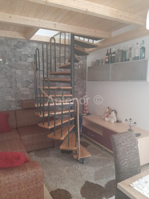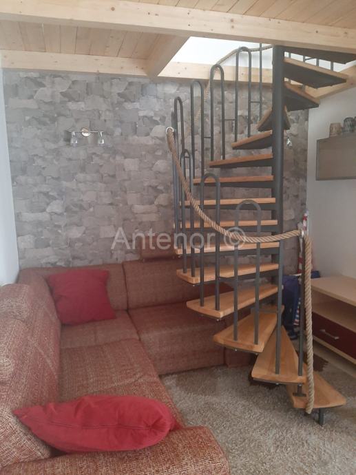 NIN - Prodaje se apartman u potkrovlju zgrade. Apartman se sastoji od dvije spavaće sobe, kuhinje s blagovaonom i dnevnim boravkom, kupaonom i balkonom. Unutarnje stepenice vode na galeriju čija je površina 25 m2.