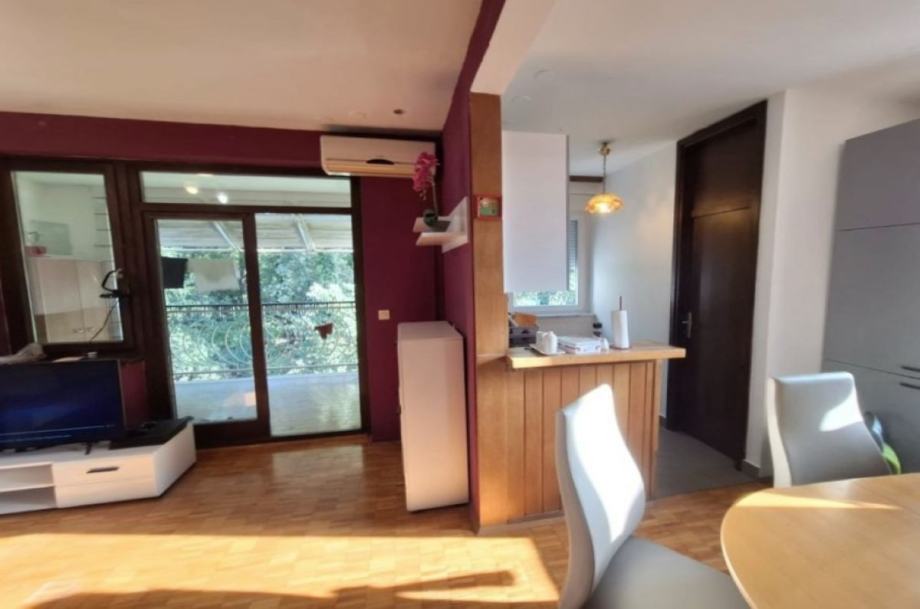 Otok Krk, Njivice, Kijac, prodaja opremljenog apartmana površine 58 m2, na prvom katu apartmanske zgrade. Apartman se sastoji od dnevne sobe, kuhinje, blagovaone, spavaće sobe, kupaonice, hodnika i natkrivene terase. PVC stolarija, klimatizacija, parkirno mjesto. Atraktivna lokacija, 200 m od mora.