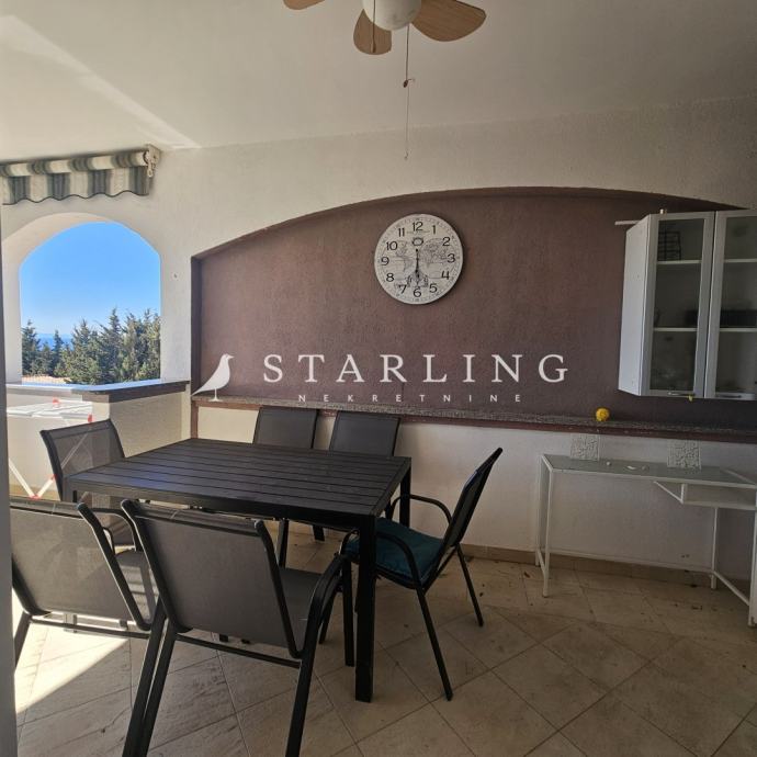 Apartman se sastoji od dnevnog boravka s blagovaonicom i kuhinje, sobe, kupaonice s wc-om, ostave i balkona s kojeg s pruža pogled na more.