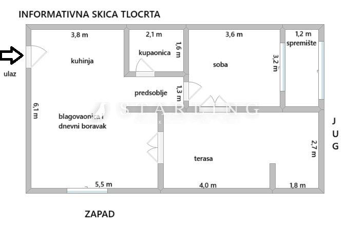 Prodaje se dvosoban apartman površine 62 m2 na drugom katu zgrade bez lifta.