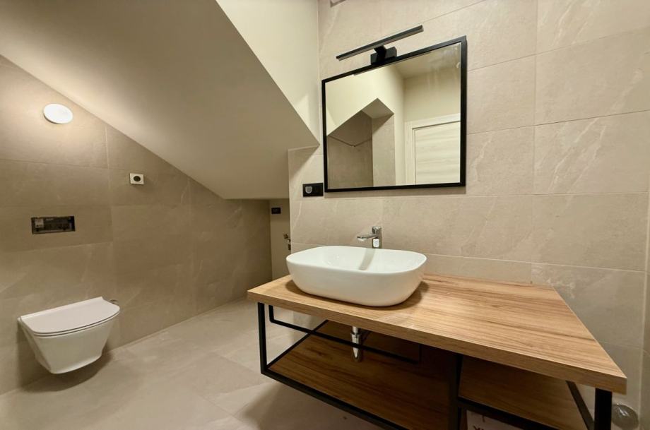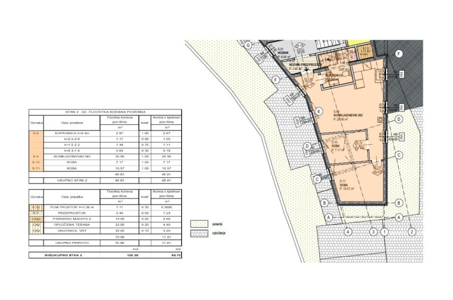 Otok Krk, Omišalj, prodaja atraktivnog apartmana površine 48,91 m2 u prizemlju moderne stambene zgrade suvremenih linija i dizajna s ukupno pet stambenih jedinica, na mirnoj lokaciji idealnoj za stanovanje i odmor. Apartman se sastoji od dvije spavaće sobe, dnevne sobe s kuhinjom i blagovaonom, kupaonicom i terasom od 22 m2.Zgrada je građena od vrhunskih materijala i opremljena najkvalitetnijom opremom, s A+ energetskim razredom koji osigurava visoku energetsku učinkovitost i niske troškove režija.Stanovi su opremljeni:• visokokvalitetnom PVC stolarijom s RAL ugradnjom• ALU roletama i komarnicima (proizvođač ABS, talijanske kvalitete)• talijanskim sobnim vratima• potpuno opremljenim kupaonicama s vrhunskom sanitarnom opremom• podnim cijevnim grijanjem (Vaillant)• klima-uređajima u svim prostorijamaZgrada je južne orijentacije, s otvorenim pogledom na more, a u neposrednoj blizini nalaze se centar mjesta, škola i vrtić.Ova nekretnina predstavlja idealan spoj za cjelogodišnje stanovanje i ljetovanje, kao i odličnu priliku za investiciju.