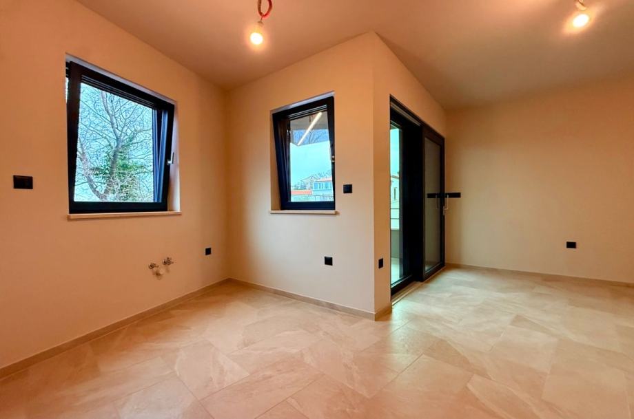 Otok Krk, Omišalj, prodaja atraktivnog apartmana površine 49,98 m2 u prizemlju moderne stambene zgrade suvremenih linija i dizajna s ukupno pet stambenih jedinica, na mirnoj lokaciji idealnoj za stanovanje i odmor. Apartman se sastoji od dvije spavaće sobe, dnevne sobe s kuhinjom i blagovaonom, kupaonice i natkrivenog balkona.Apartmani su opremljeni:• visokokvalitetnom PVC stolarijom s RAL ugradnjom• ALU roletama i komarnicima (proizvođač ABS, talijanske kvalitete)• talijanskim sobnim vratima• potpuno opremljenim kupaonicama s vrhunskom sanitarnom opremom• podnim cijevnim grijanjem (Vaillant)• klima-uređajima u svim prostorijamaZgrada je građena od vrhunskih materijala i opremljena najkvalitetnijom opremom, s A+ energetskim razredom koji osigurava visoku energetsku učinkovitost i niske troškove režija. Južne je orijentacije, s otvorenim pogledom na more, a u neposrednoj blizini nalaze se centar mjesta, škola i vrtić.Ova nekretnina predstavlja idealan spoj za cjelogodišnje stanovanje i ljetovanje, kao i odličnu priliku za investiciju.