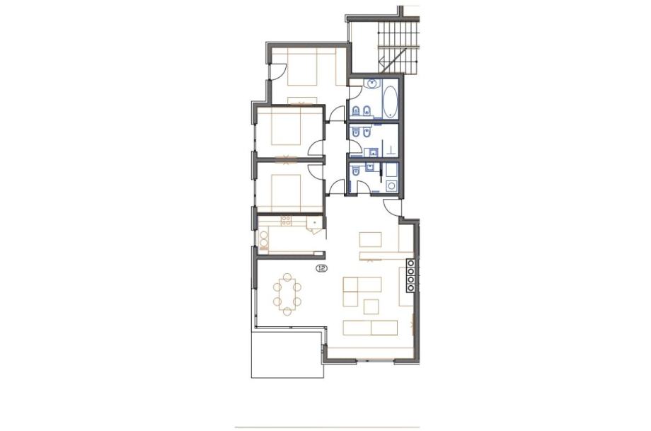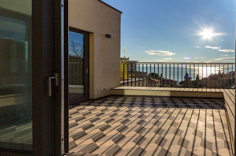 Opatija, prodaja ekskluzivnog apartmana površine 144,56 m2, na trećem katu urbane vile, s panoramskim pogledom na more. Apartman se sastoji od dnevne sobe, kuhinje, blagovaone, tri spavaće sobe, dvije kupaonice, toaleta, hodnika i terase. ALU stolarija, klimatizacija, podno grijanje, dizalo, garažno parkirno mjesto.