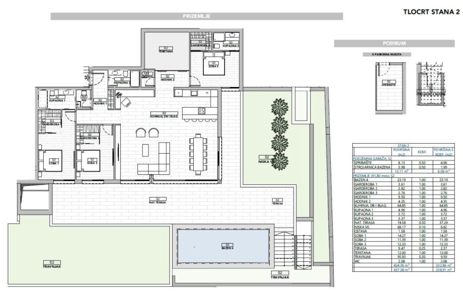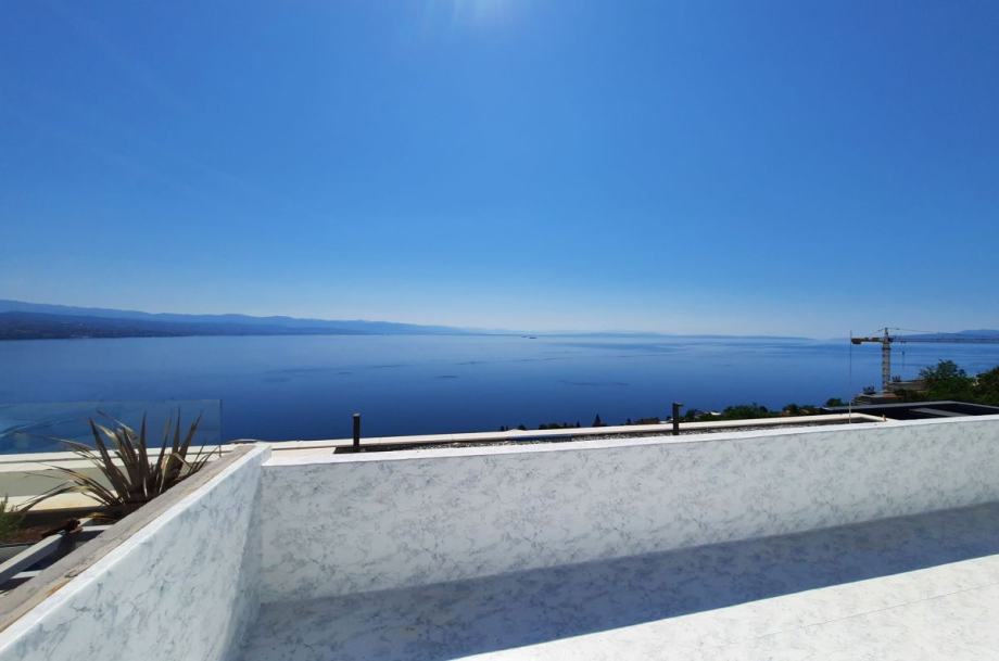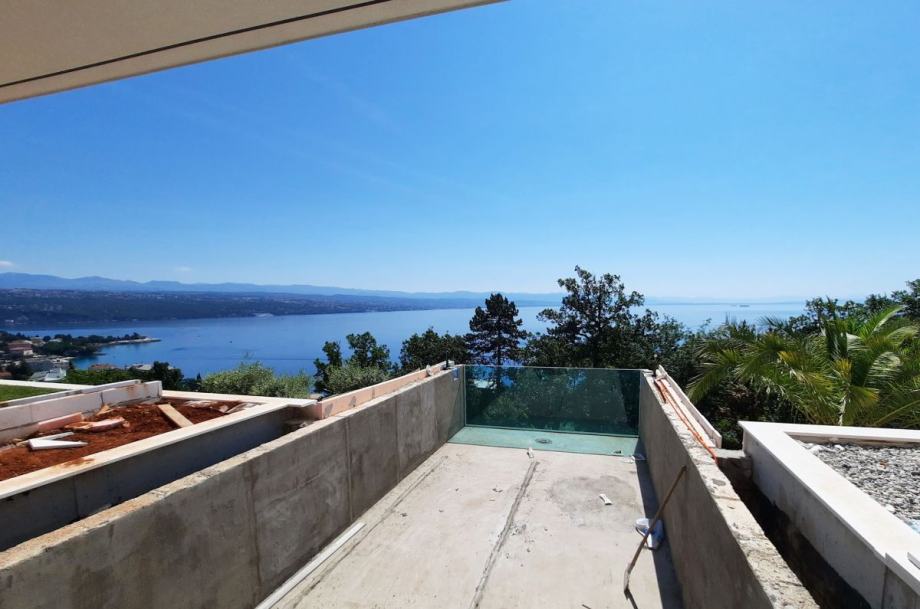 Opatija, prodaja ekskluzivnog apartmana površine 154 m2, u prizemlju apartmanske zgrade s bazenom i okućnicom od 119 m2. Apartman se sastoji od dnevne sobe, kuhinje, blagovaone, tri spavaće sobe s kupaonicama i garderobama, toaleta, ostave, teretane, dva hodnika i spremišta u podrumu zgrade. Vrhunska kvaliteta gradnje i opreme, Schuco aluminijska stolarija s troslojnim staklom, električne rolete, klimatizacija, podno grijanje, sigurnosni sustav, dizalo, tri garažna parkirna mjesta. Atraktivna lokacija, 300 m od plaže.