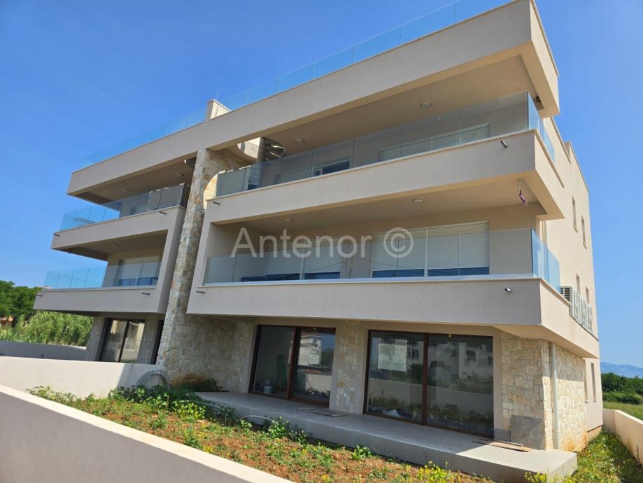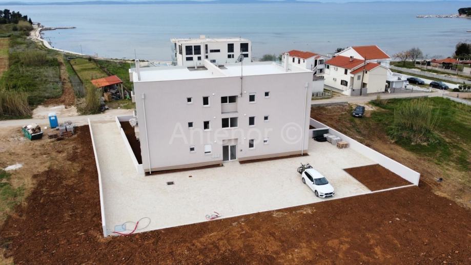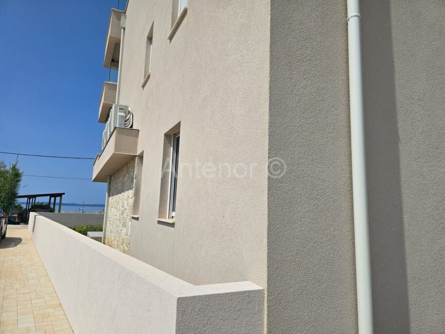 PRIVLAKA - Prodaje se apartman S1 u prizemlju apartmanske zgrade sa šest apartmana, u 2. redu od mora. Apartman se sastoji od kuhinje, blagavaonice, dnevnog boravka, dvije spavaće sobe, kupaonice, praonice i natkrivene terase. Apartmanu pripada vrt i jedno parkirno mjesto.