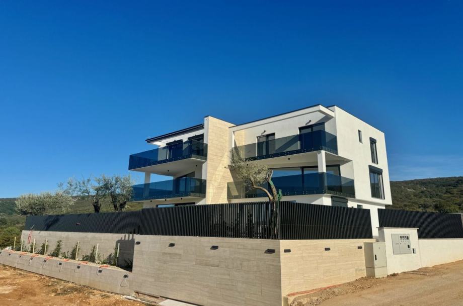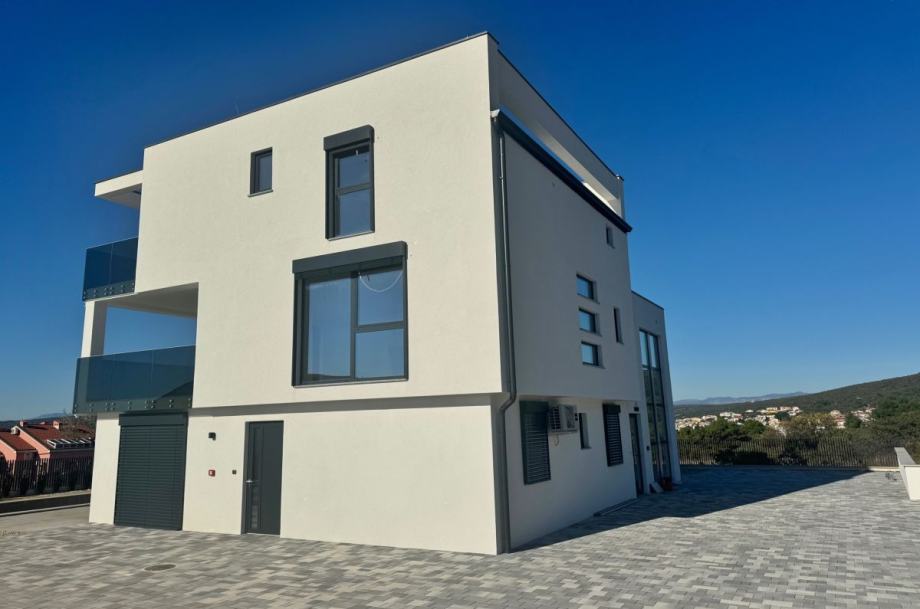 Otok Krk, Punat, prodaja atraktivnog dvoetažnog apartmana površine 116,83 m2, s pogledom na more i uređenom okućnicom, na prvom i drugom katu nove urbane vile, na atraktivnoj lokaciji, 400 m od plaže! Apartman se sastoji od prvog kata s dnevnom sobom kuhinjom i blagovaonom, toaletom, hodnikom, stubištem te natkrivenom terasom površine 8,50 m2 i drugog kata s tri spavaće sobe, dvije kupaonice, hodnikom i terasom. Visoka kvaliteta gradnje i opreme, sustav grijanja i hlađenja pomoću dizalica topline, dva parkirna mjesta.