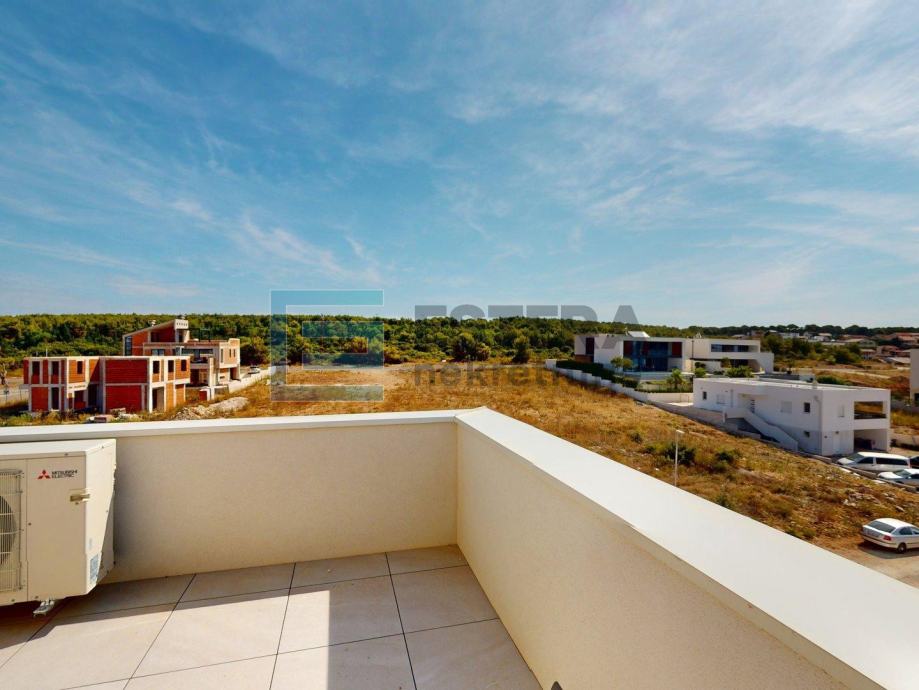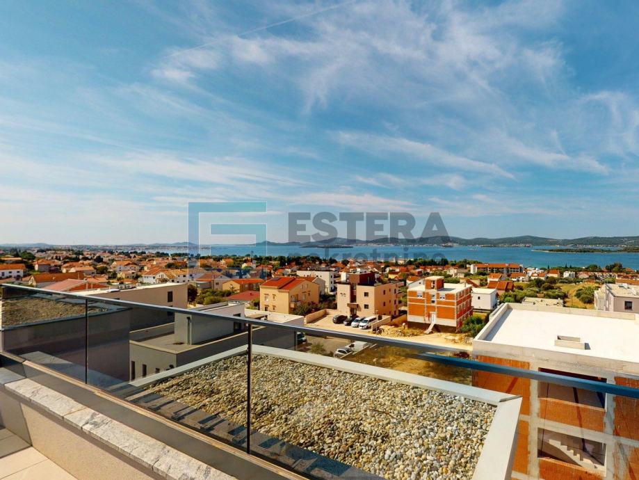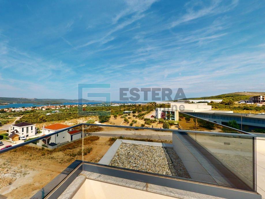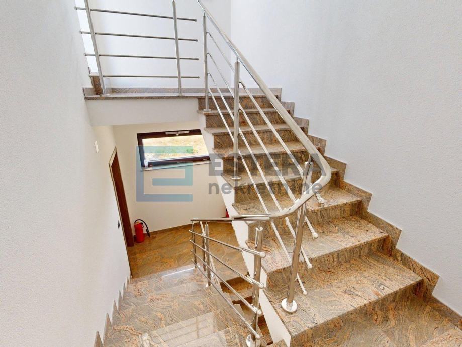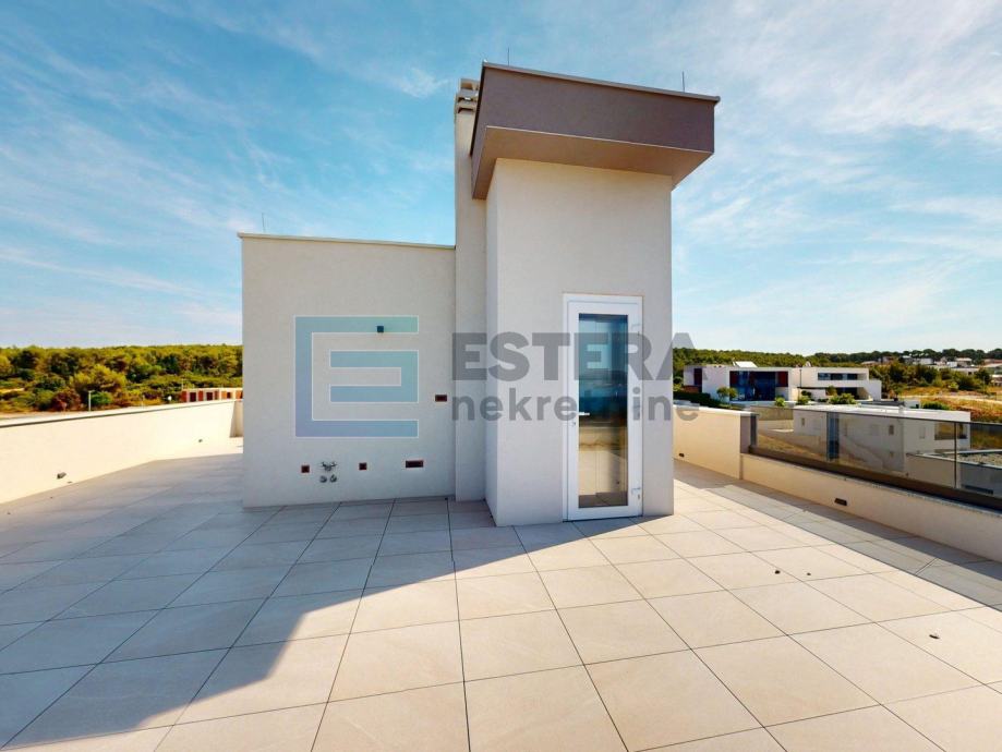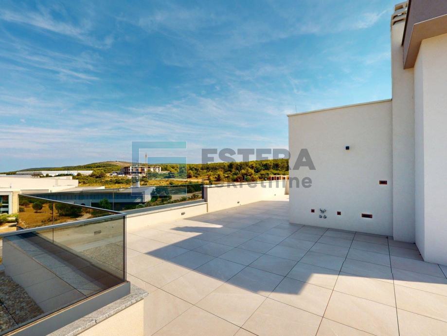 Na prodaju je luksuzan penthouse smješten na prvom katu nove građevine, dizajniran za maksimalnu udobnost i elegantan stil života. Ovaj prostrani penthouse nudi sve što trebate za luksuzan boravak, uključujući moderne sadržaje i izvanredan pogled. Ulazak u apartman je moguć stepeništem na prvom katu kao i privatnim liftom iz prizemne garaže, kojim je moguće otići direktno u apartman na prvom katu ili na izlaz na krovnoj terasi.