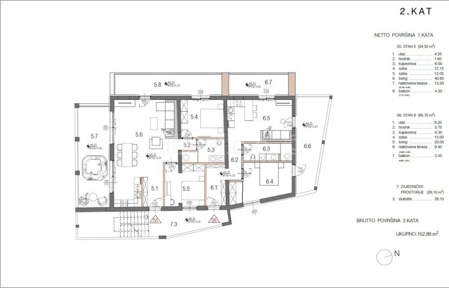 Zgrada ima šestapartmana, po dva na svakoj etaži. Visoka kvaliteta gradnje i unutarnjeg opremanja! Gradnja je u tijeku, a useljenje je planirano do početka ljeta 2024. godine.